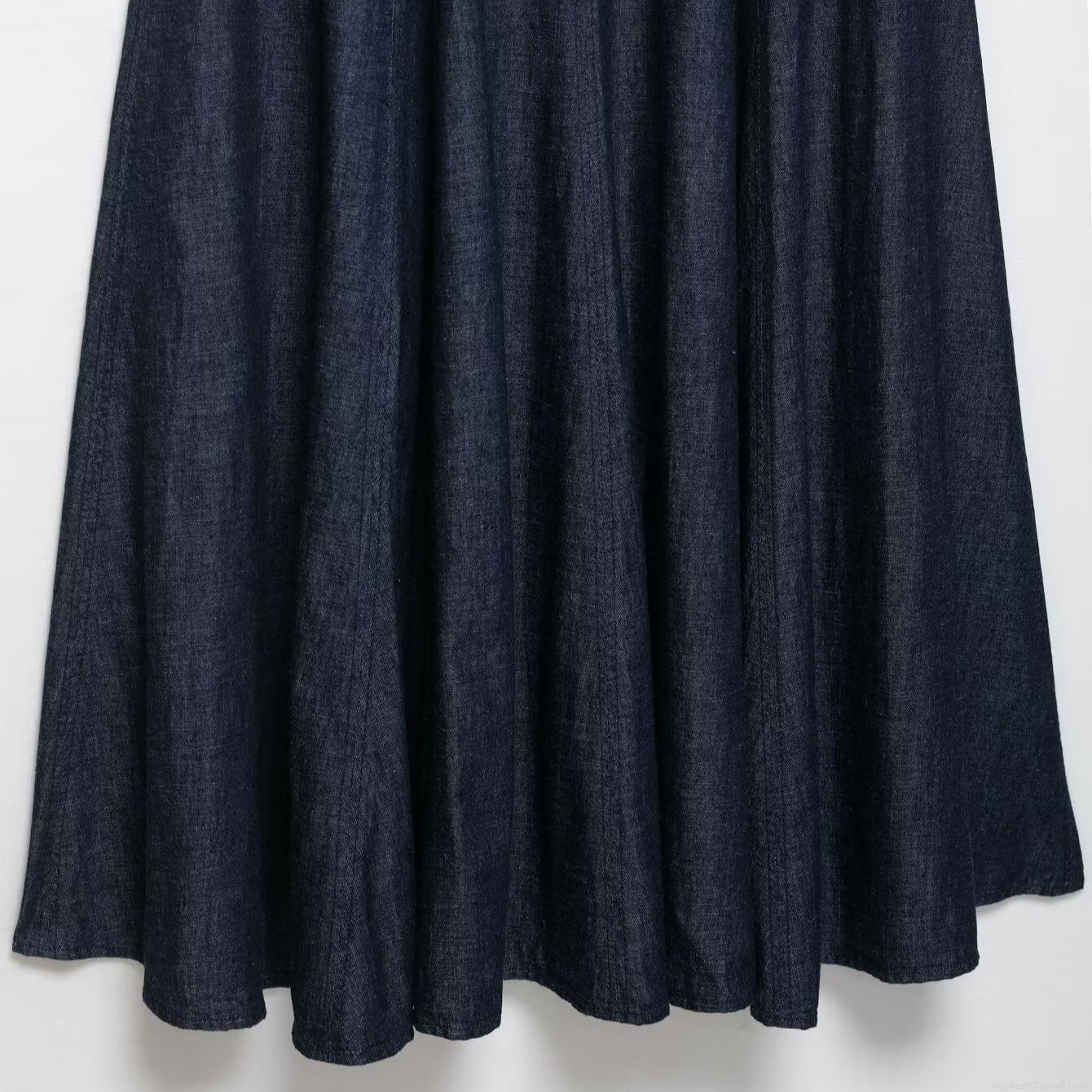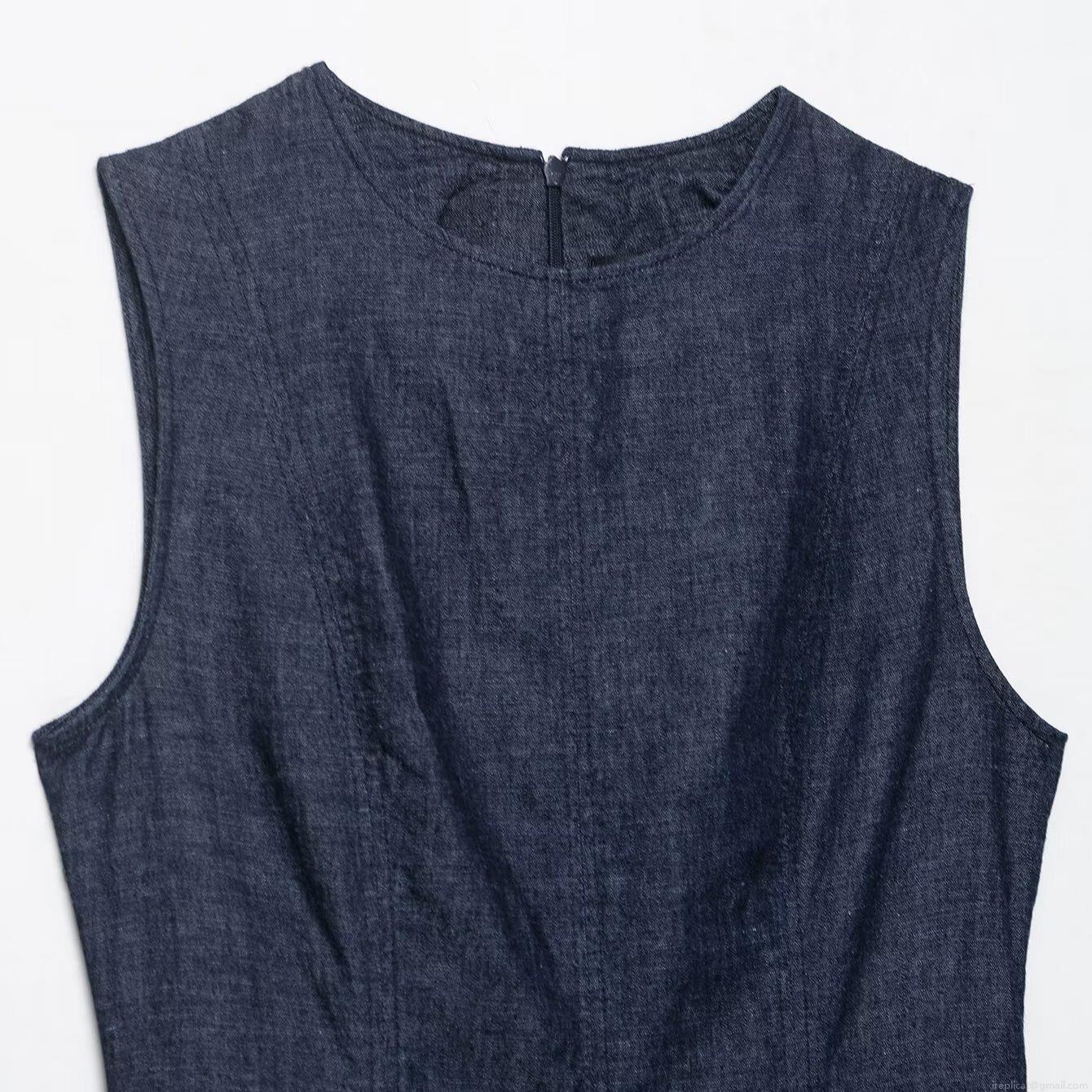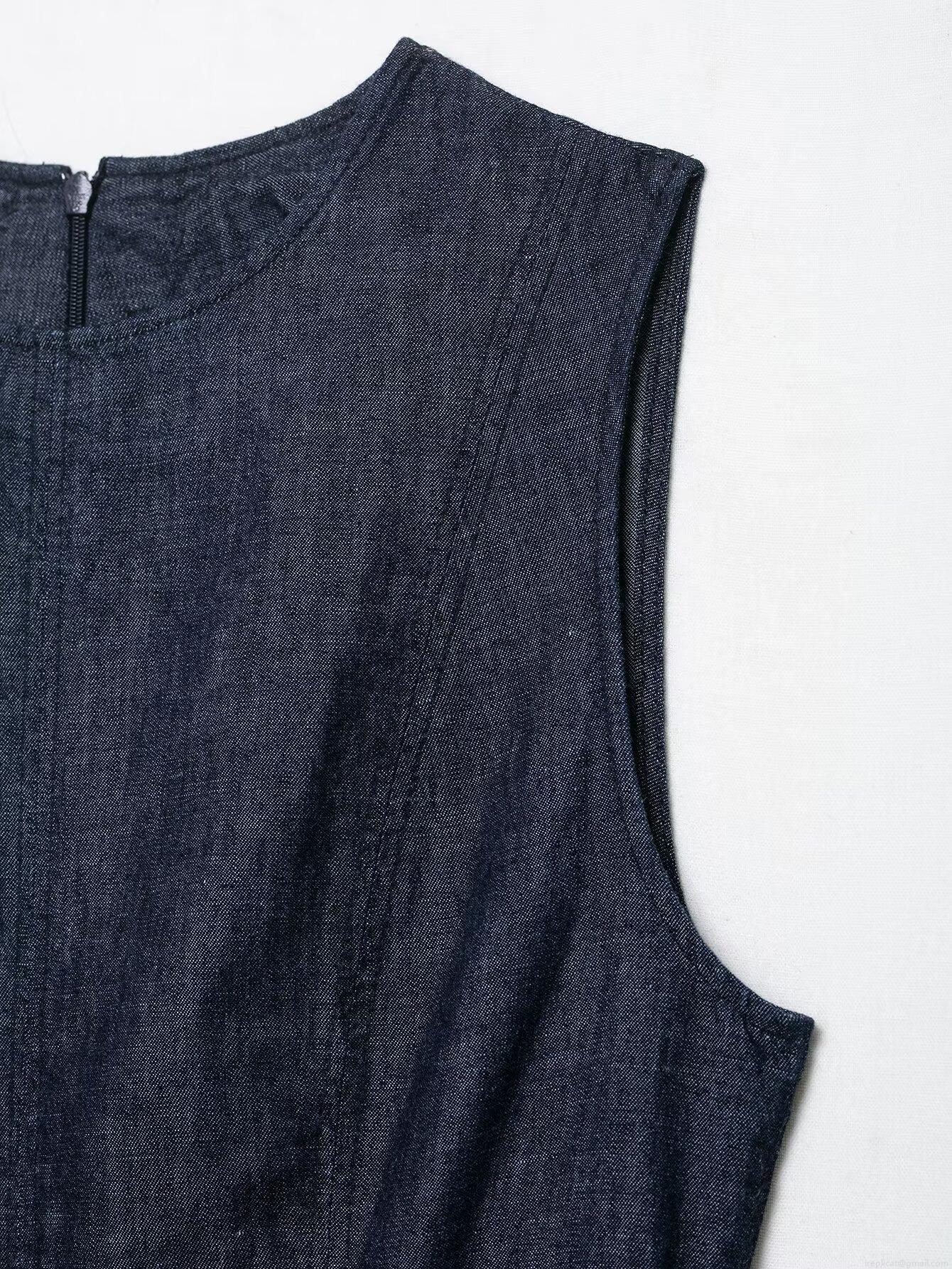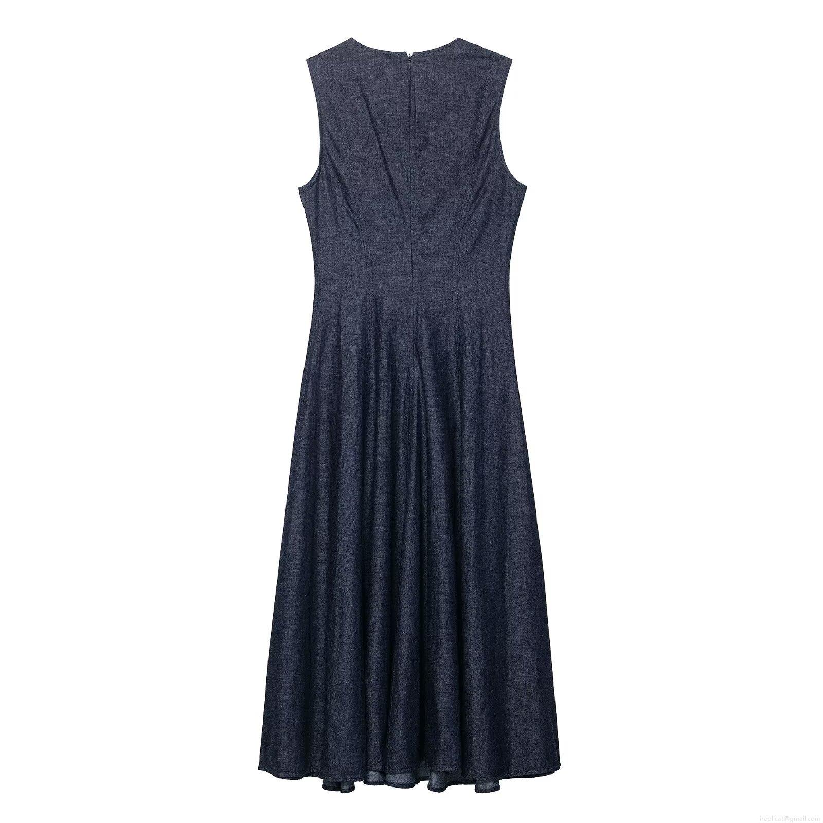 • Women's Sleeveless Round Neck Denim Midi Dress Casual Slim Fit A-Line Flared Dark Blue Long Dress For Summer Daily Wear