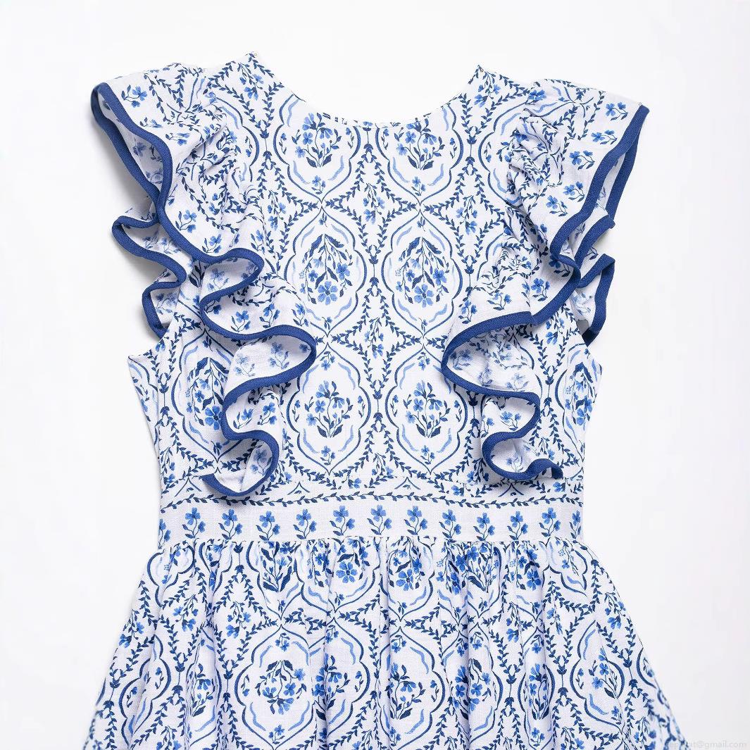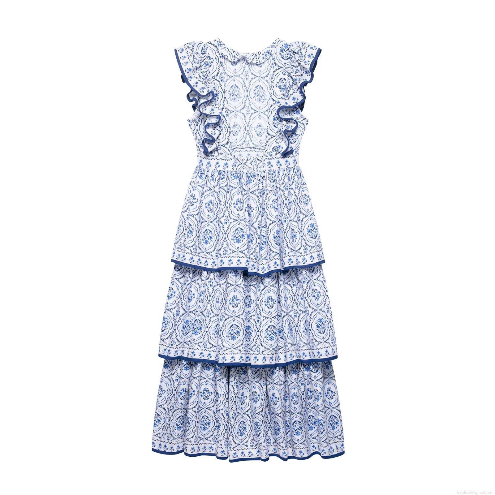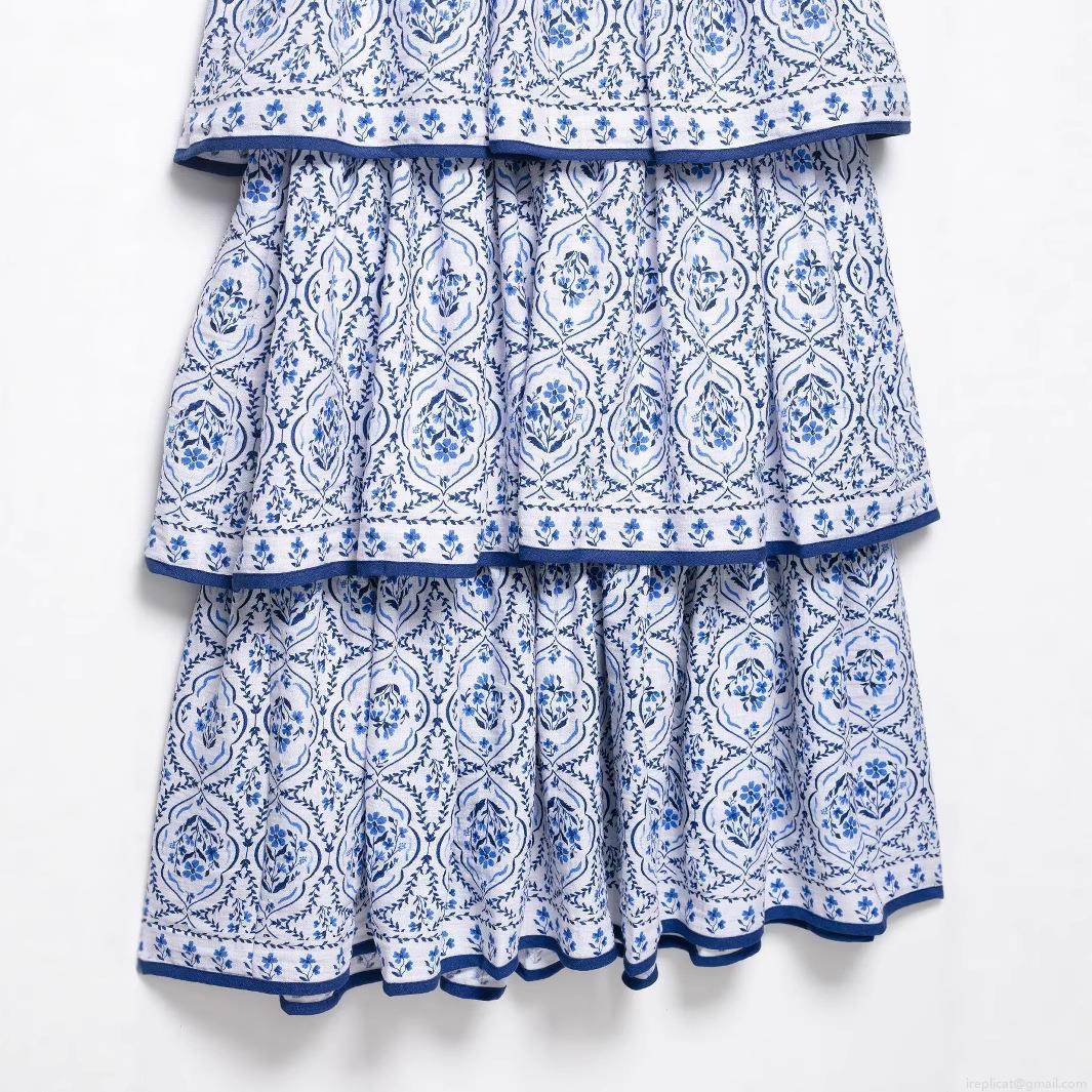 • Women's Sleeveless Round Neck Floral Print Polyester Tiered Midi Dress With Ruffle Detail Summer Western Style Cake Skirt For Party Vacation Women Clothing