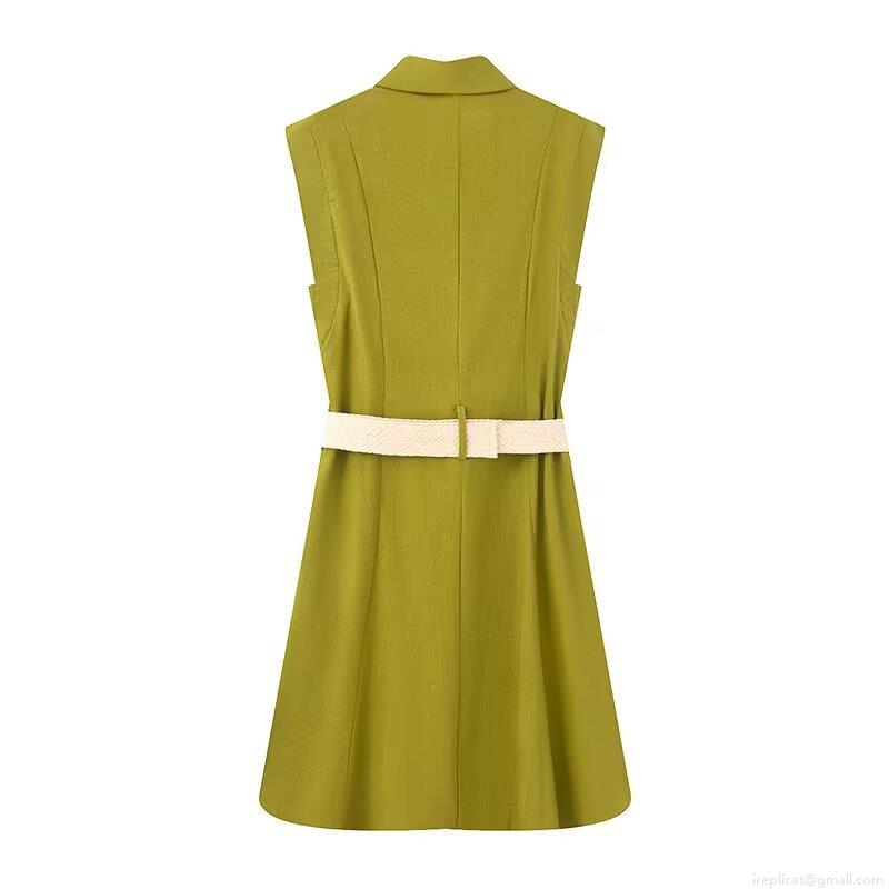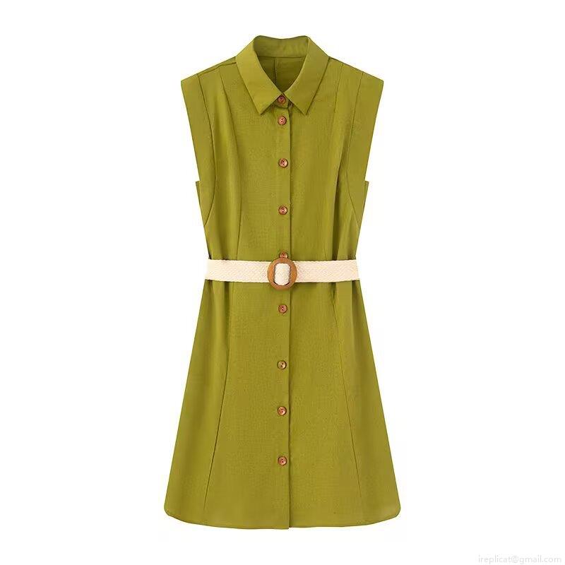 • Women's Sleeveless Shirt Dress With Belt Lapel Single Breasted Solid Color Summer Casual Midi Dress Elegant Streetwear Fashion Outfits