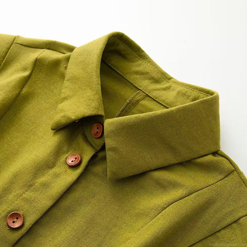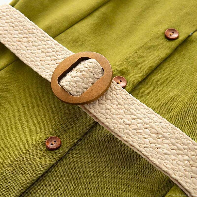 Solid Color, Buttons, Lapel, Wooden Round Buckle, Woven Belt