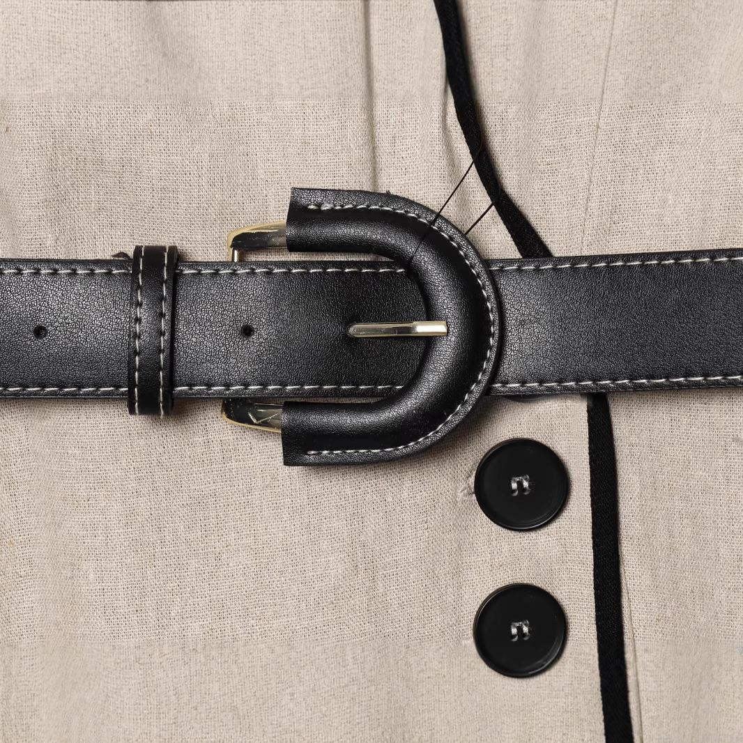• Women's Sleeveless V-Neck Midi Dress Linen Cotton Blend A-Line Belted Dress Contrast Binding Street Style Solid Color Casual Party Dress For Women Khaki
