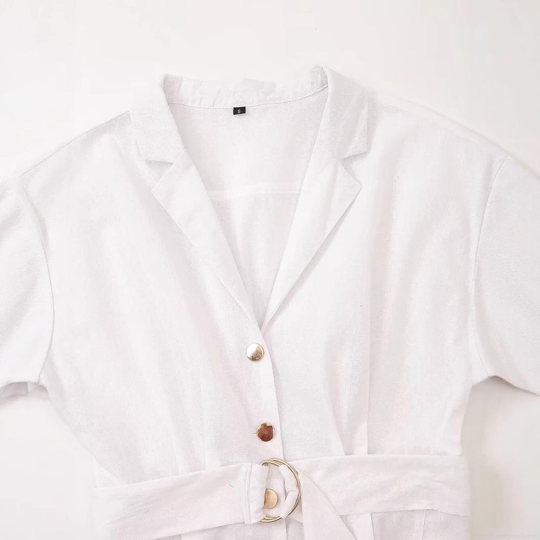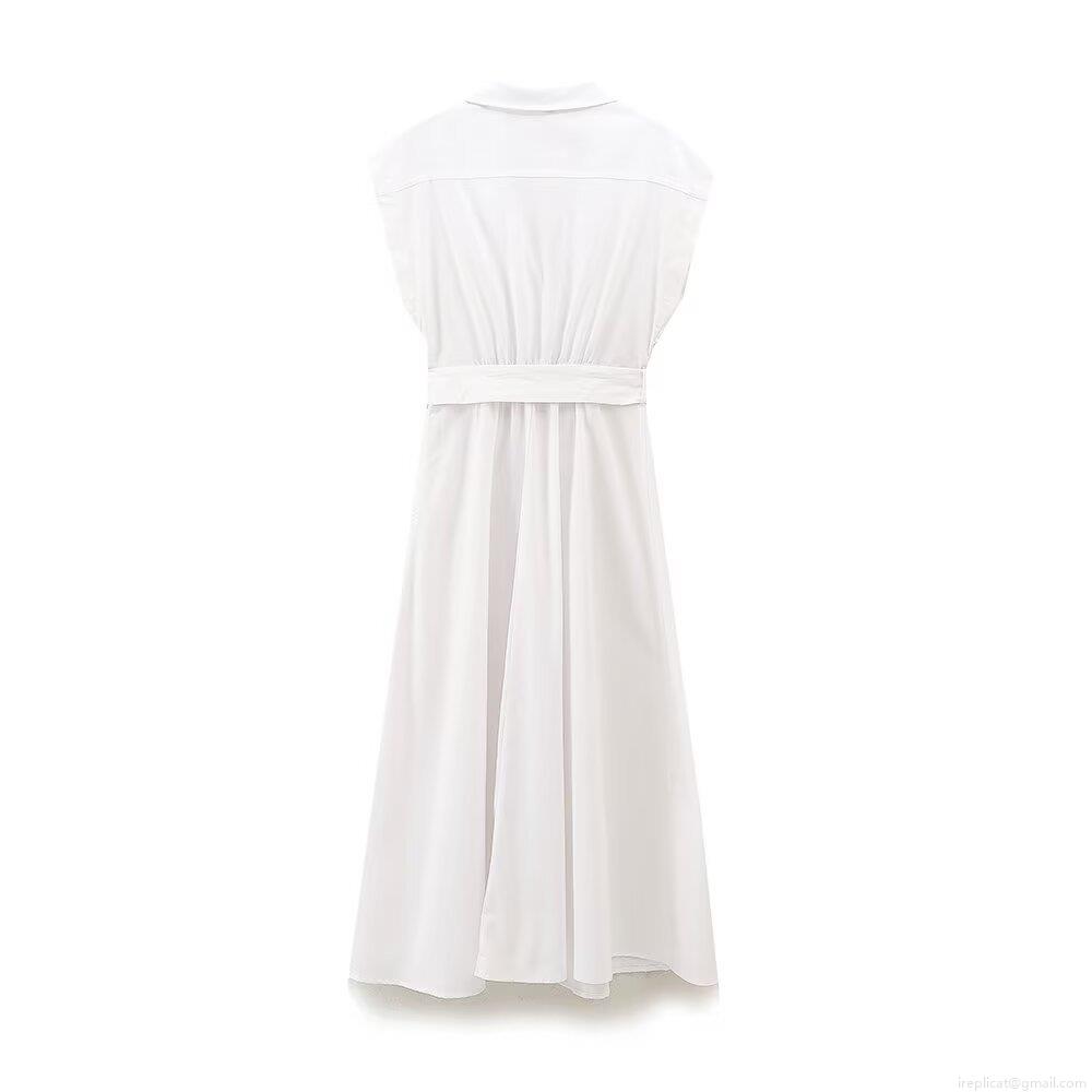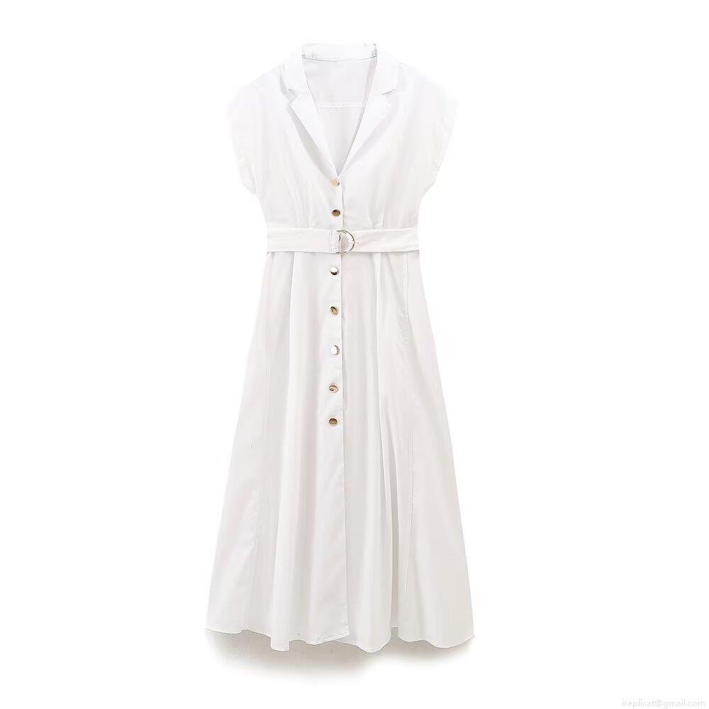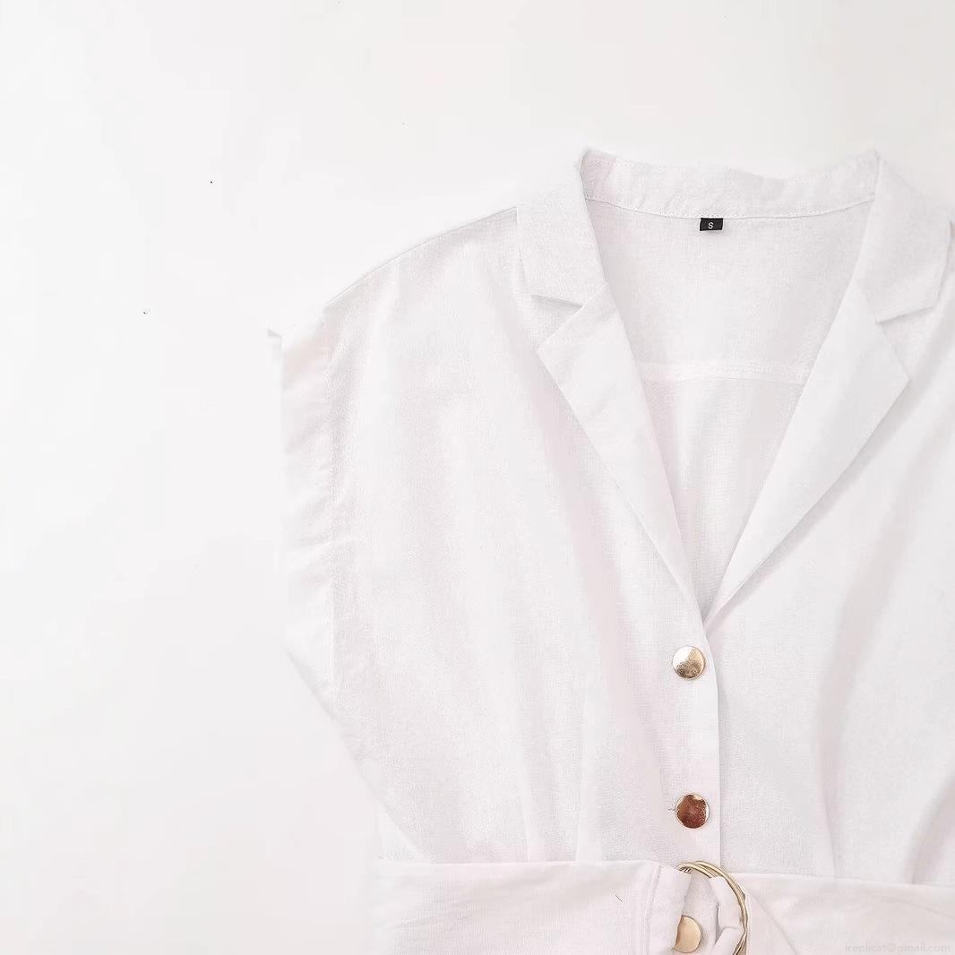 • Women's Sleeveless White Shirt Dress Cotton Blend Midi A-Line Dress With Metal Ring Belt Lapel Button Down Dress For Summer Casual Daily Streetwear