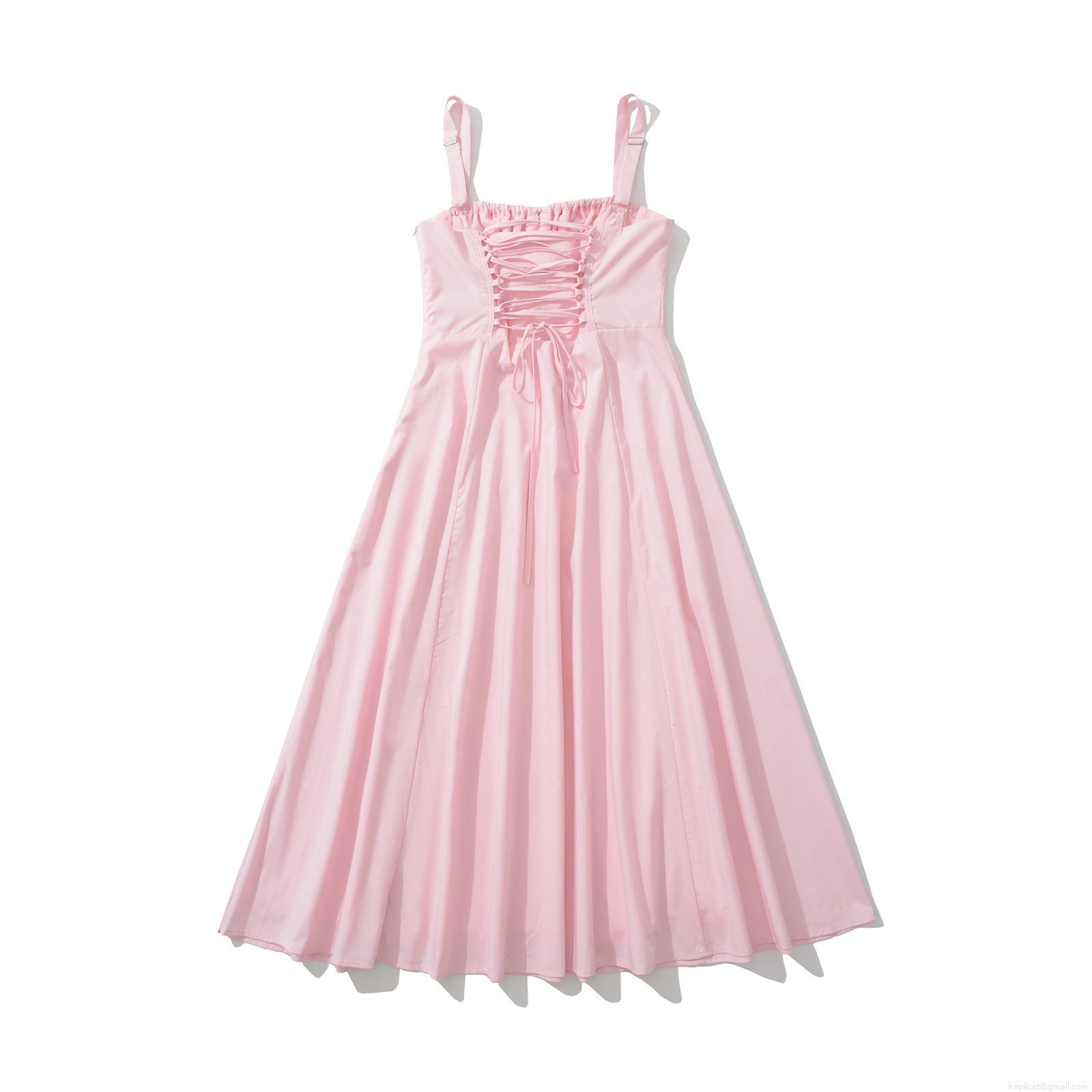 • Women's Solid Color Spaghetti Strap Midi Dress Back Lace-up Ruched Bust A-Line Dress With Slit Polyester Cotton Chiffon Summer Casual Sundress For Women