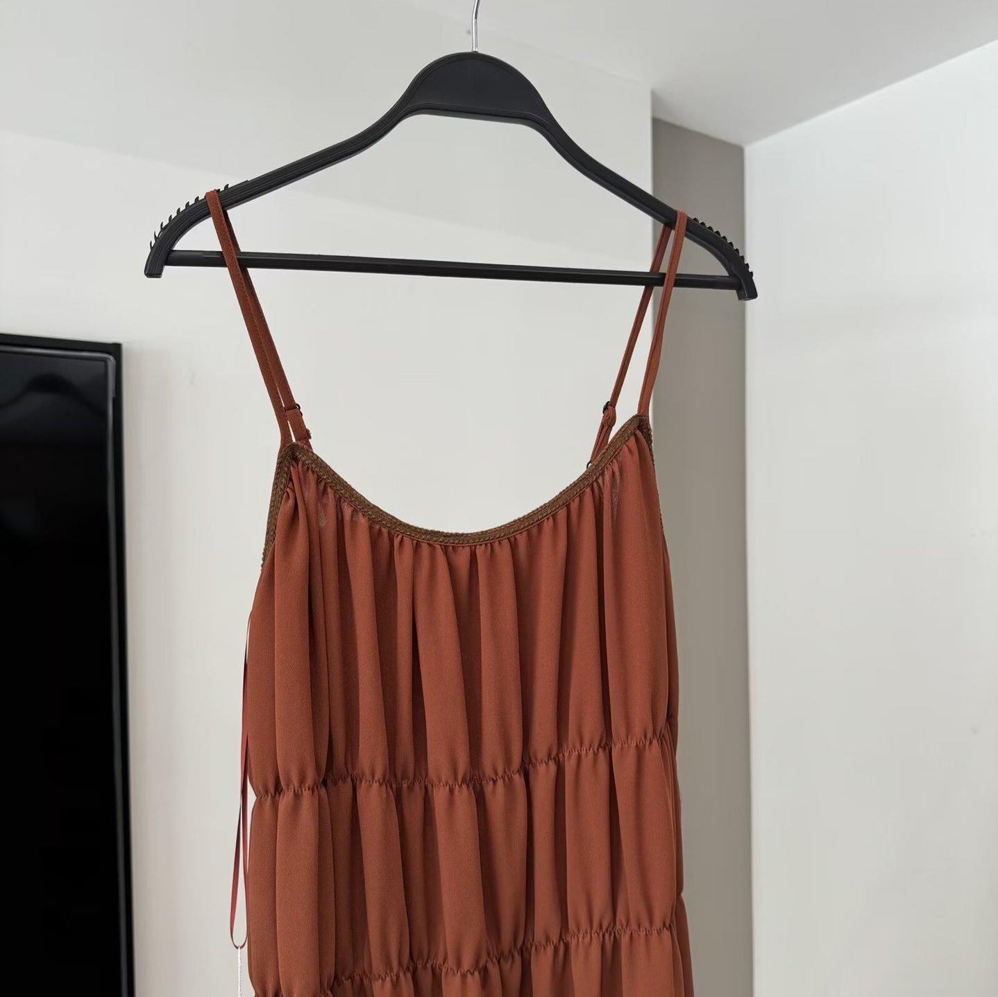 • Women's Spaghetti Strap Midi Dress Tiered Ruffle Floral Embroidered High Waist A-Line Solid Brick Red Polyester Spandex Summer Vacation Party Dresses