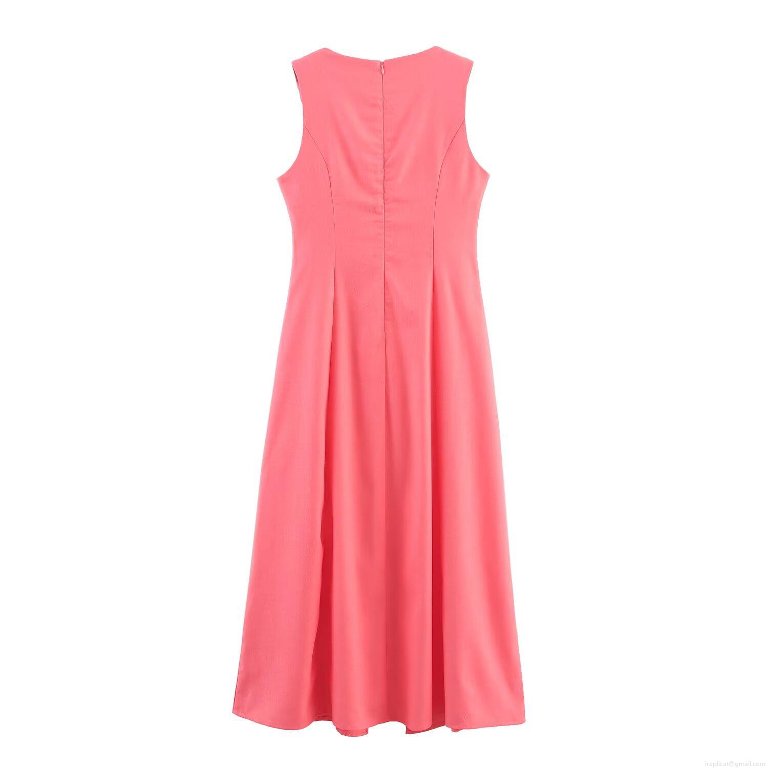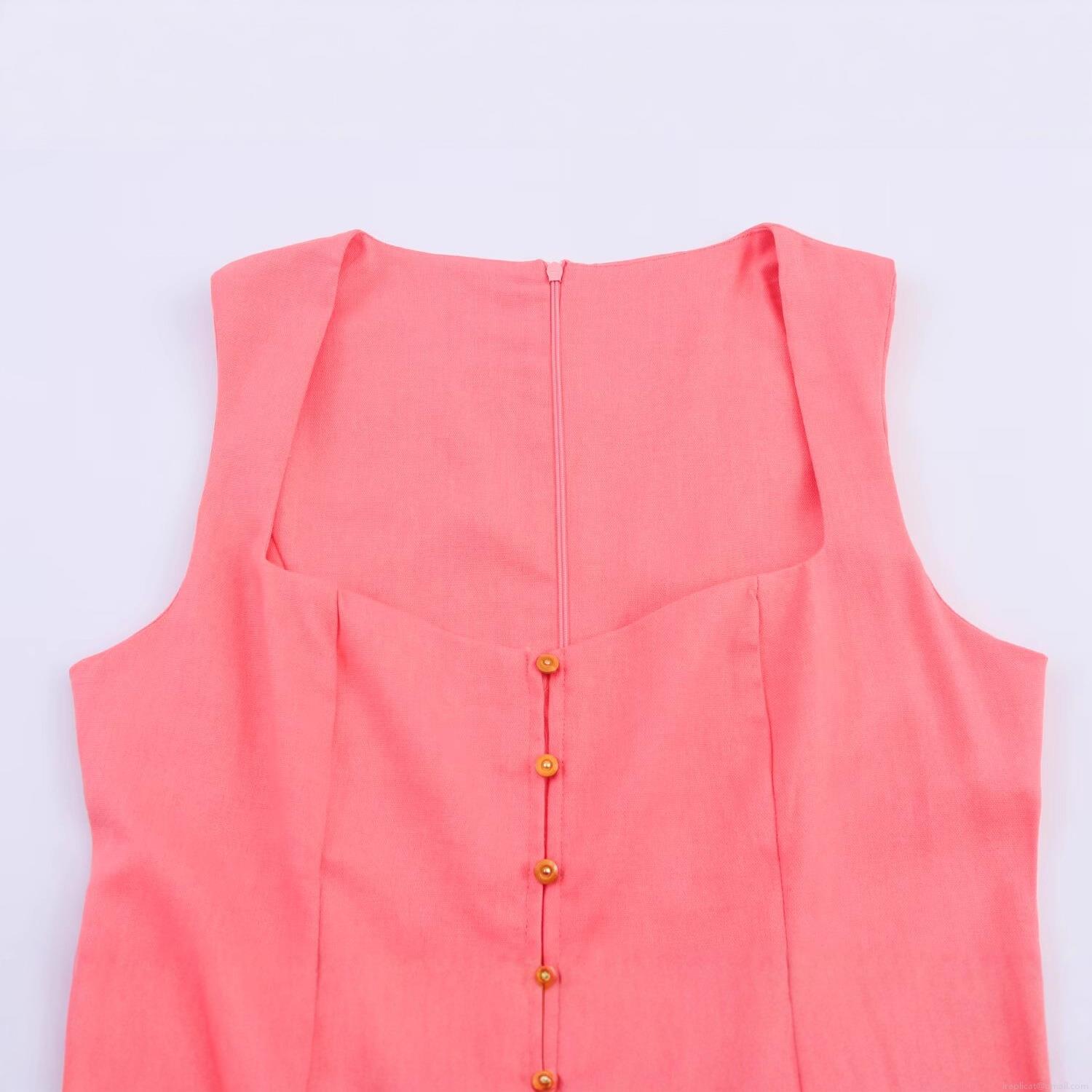 • Women's Square Neck Sleeveless Single Breasted Midi Dress Polyester Blend Slit Hem Streetwear Casual Party Rose Pink