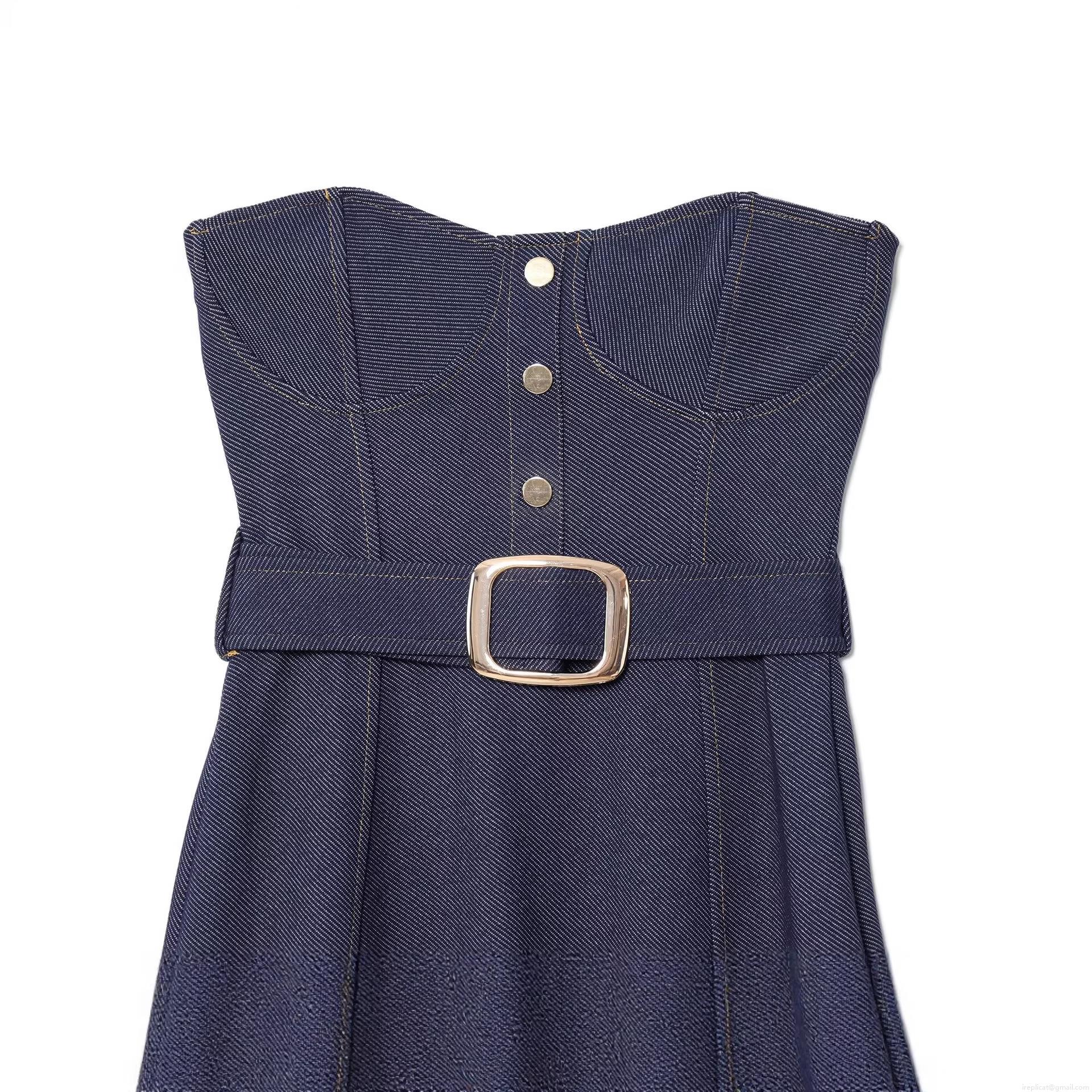 • Women's Strapless Denim Midi Dress With Belt Retro A-Line Tube Top Jean Dress With Metal Buttons And Topstitching For Casual Streetwear Party Sleeveless Slim Fit Indigo Blue One-Piece Dress