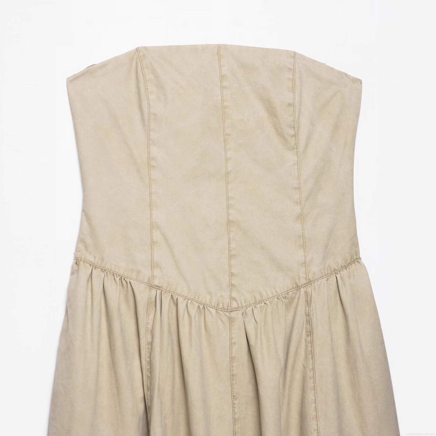 • Women's Strapless Tube Maxi Dress Khaki Solid Color Backless A-Line Evening Gown For Party Streetwear Sexy Elegant Fashion Lady Autumn Apparel