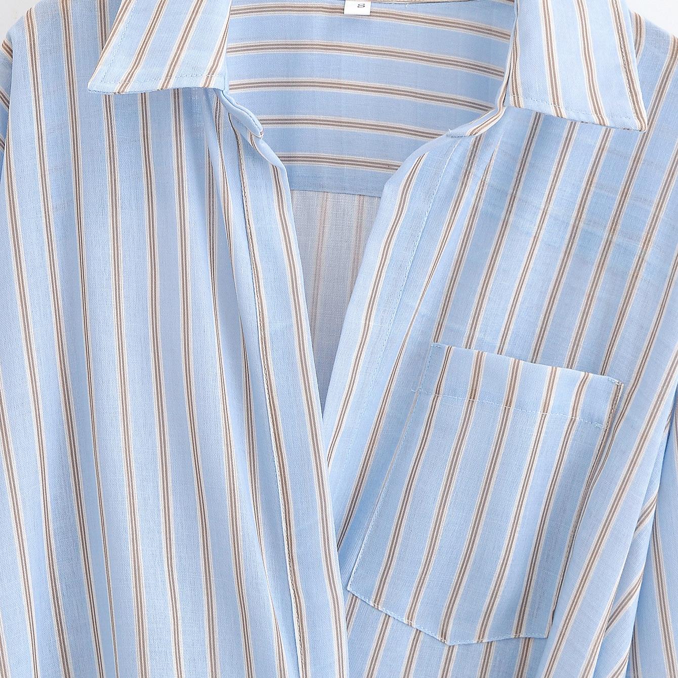 • Women's Striped Lapel Long Sleeve Shirt Dress Elegant Tie Waist Midi Dress 100% Polyester Street Style Commuter Dress For Lady