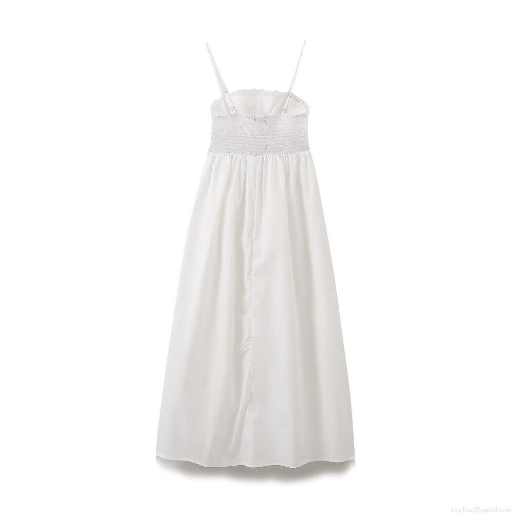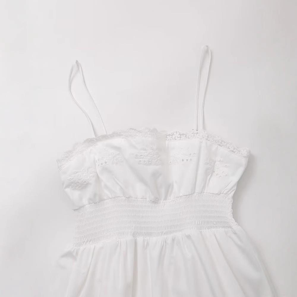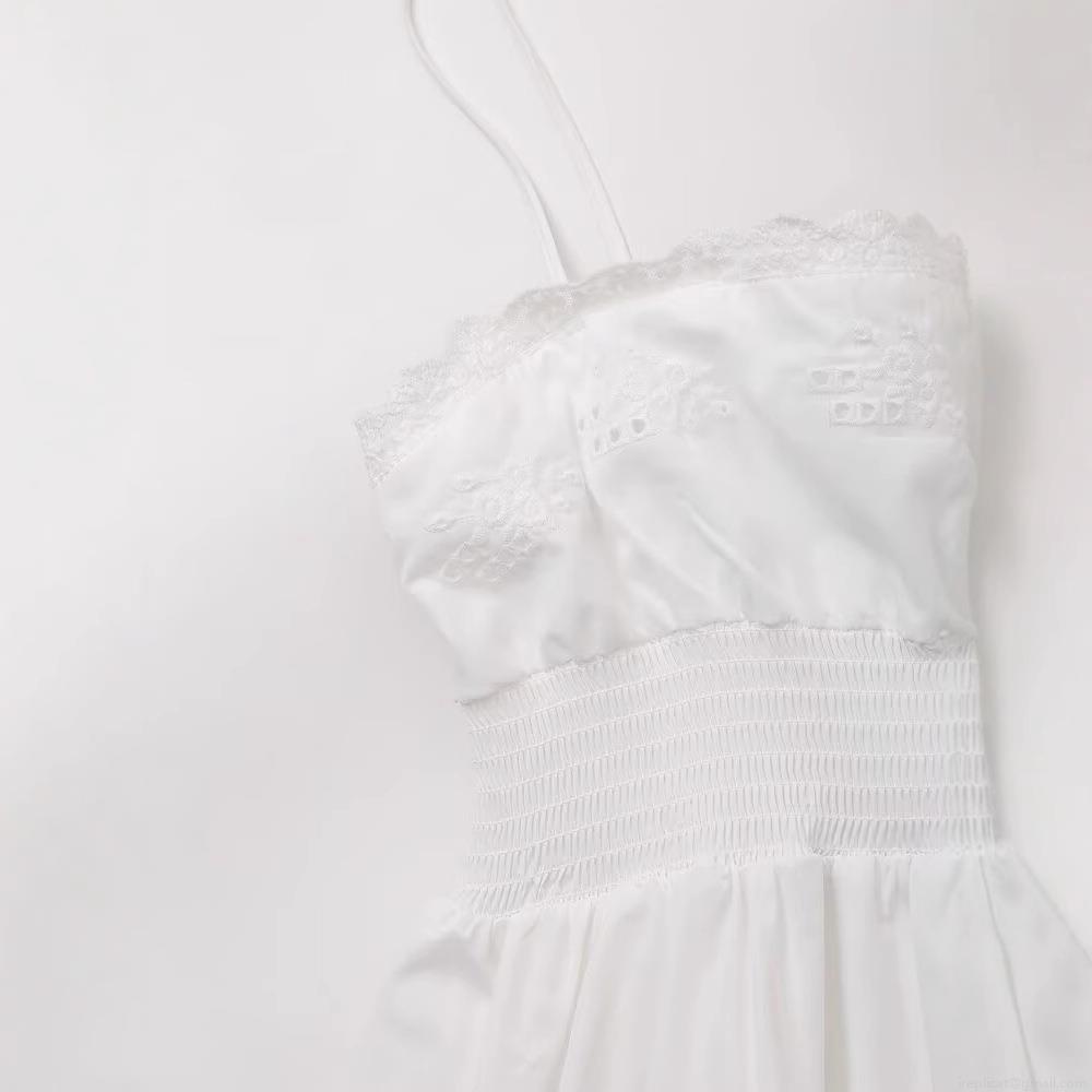 • Women's Summer Casual Cotton Blend Slip Midi Dress With Embroidery Lace Trim Smocking Slim Fit A-Line Dress For Vacation Beach Women Clothing