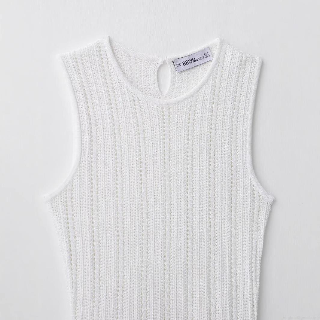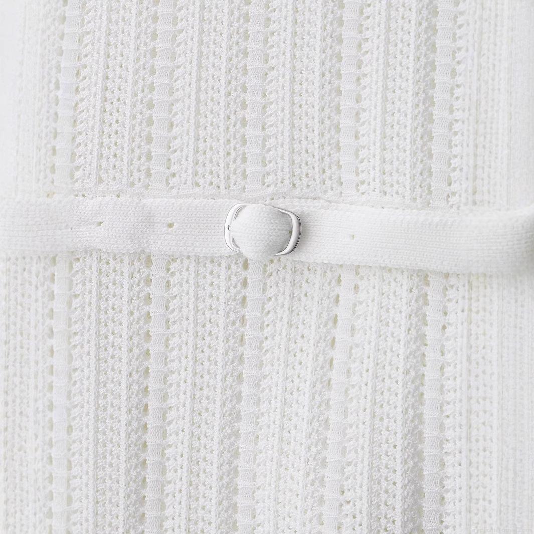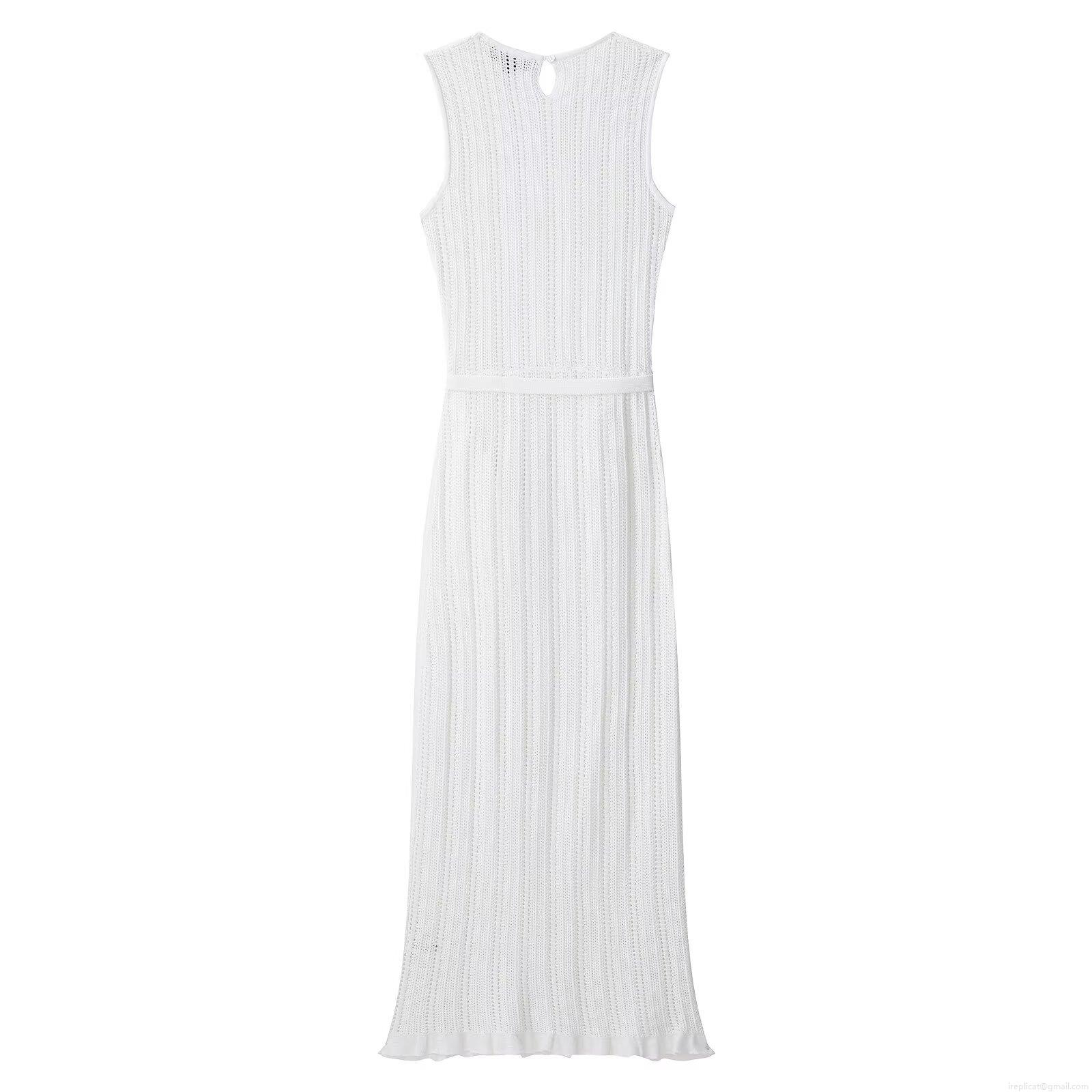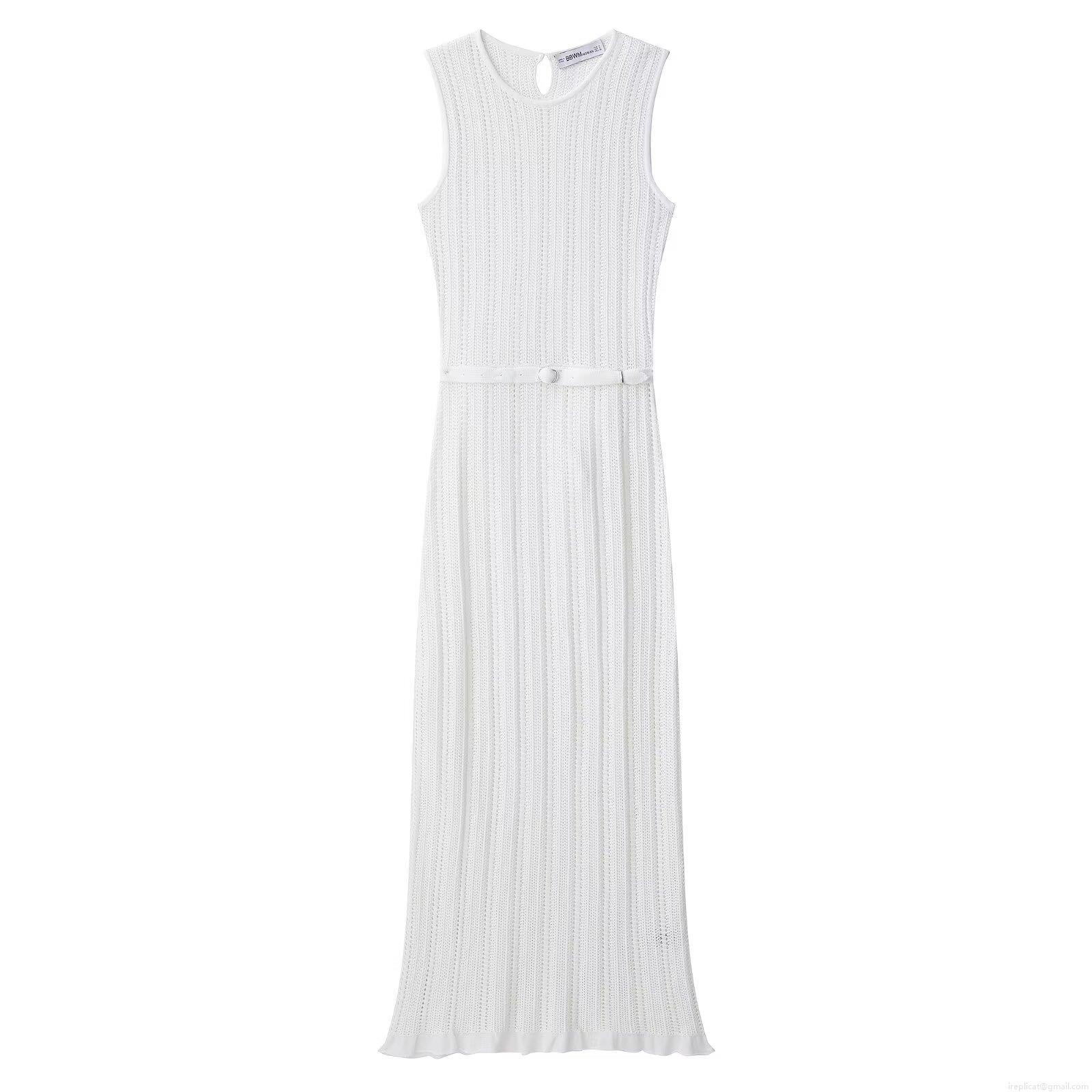 • Women's Summer Elegant Knitted Sleeveless Midi Dress With Belt Round Neck Solid Color Minimalist Streetwear White Polyester Long Dress