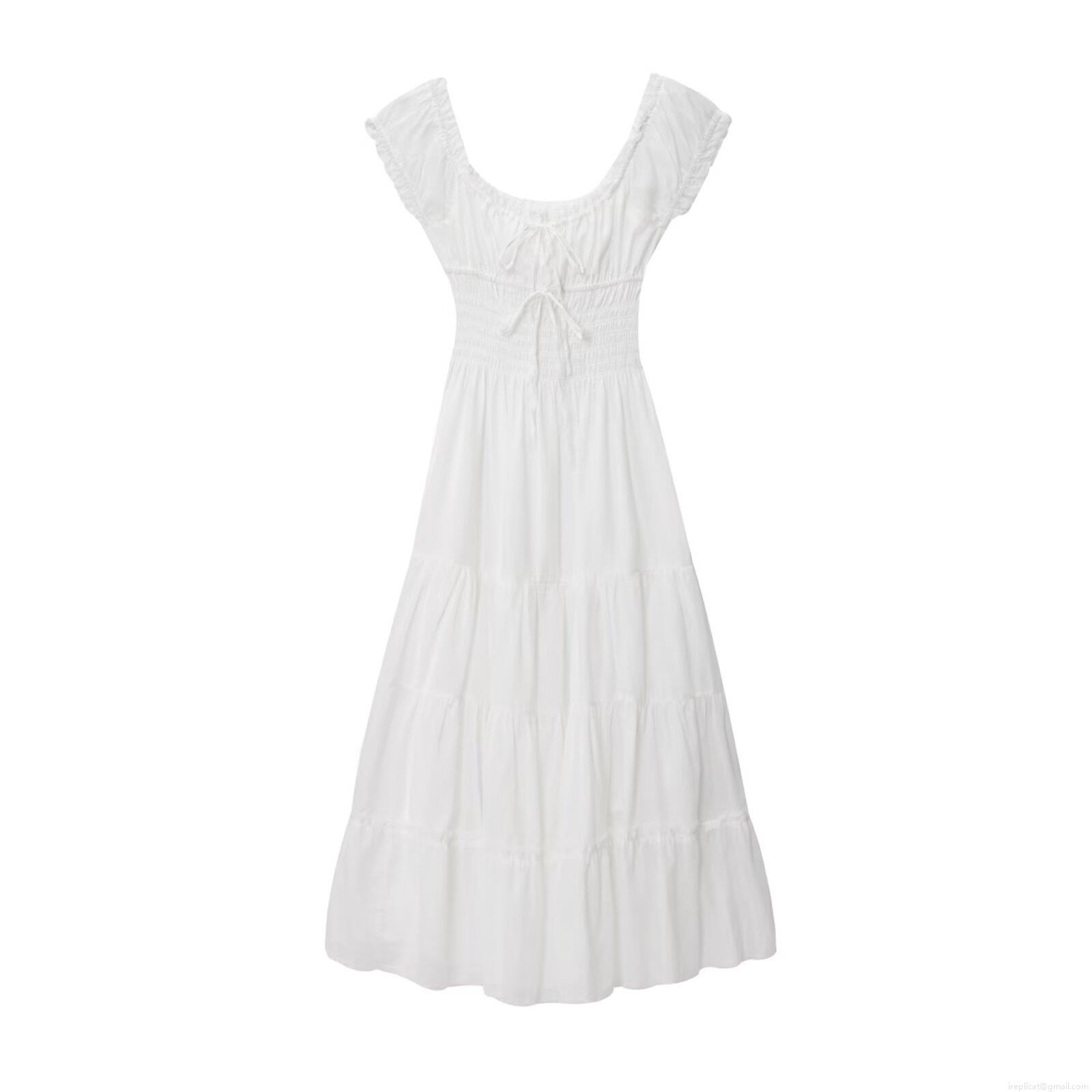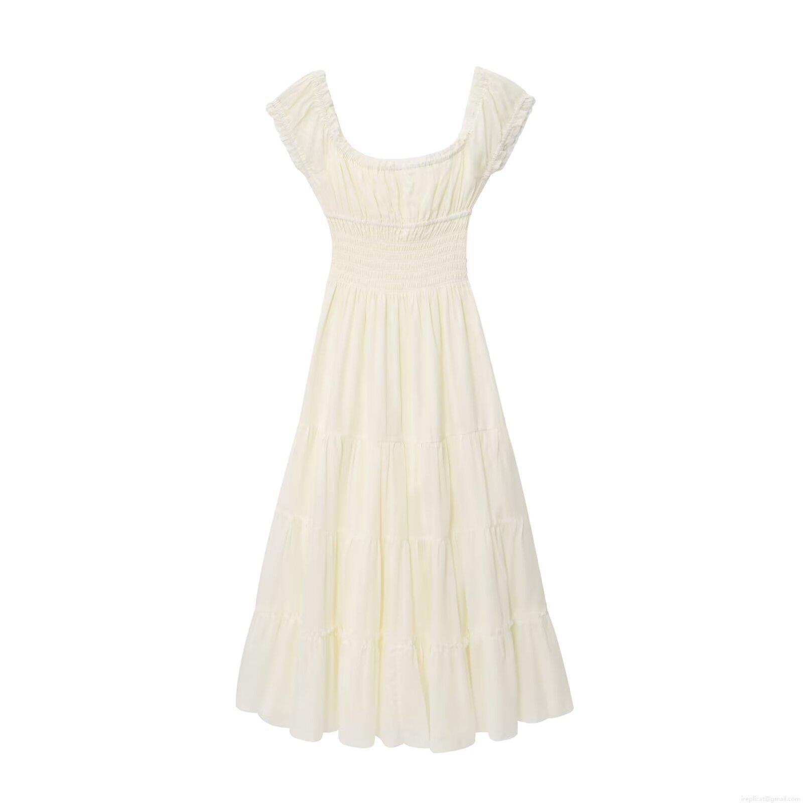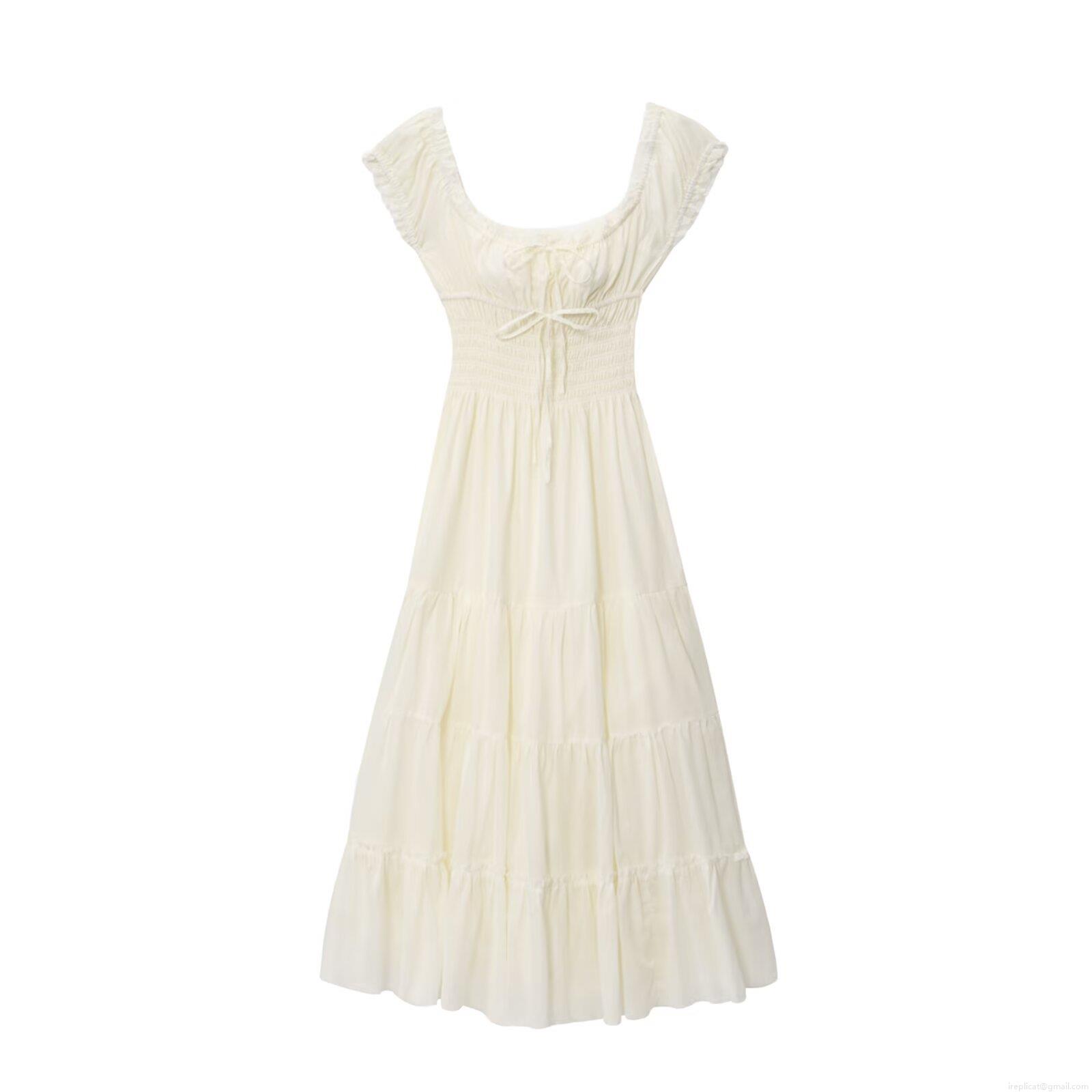 • Women's Summer European Style Solid Color Midi Dress Polyester Ruffle Smocked Waist Tiered A-Line Sleeveless Bow Knot Dress for Vacation Party Women