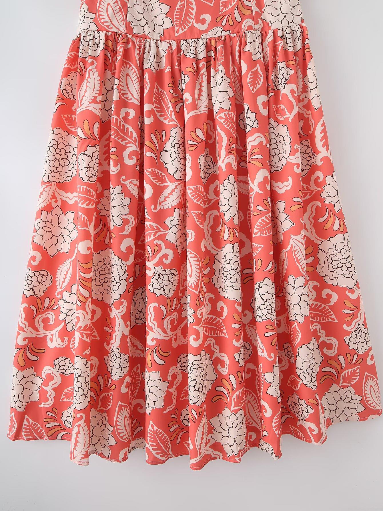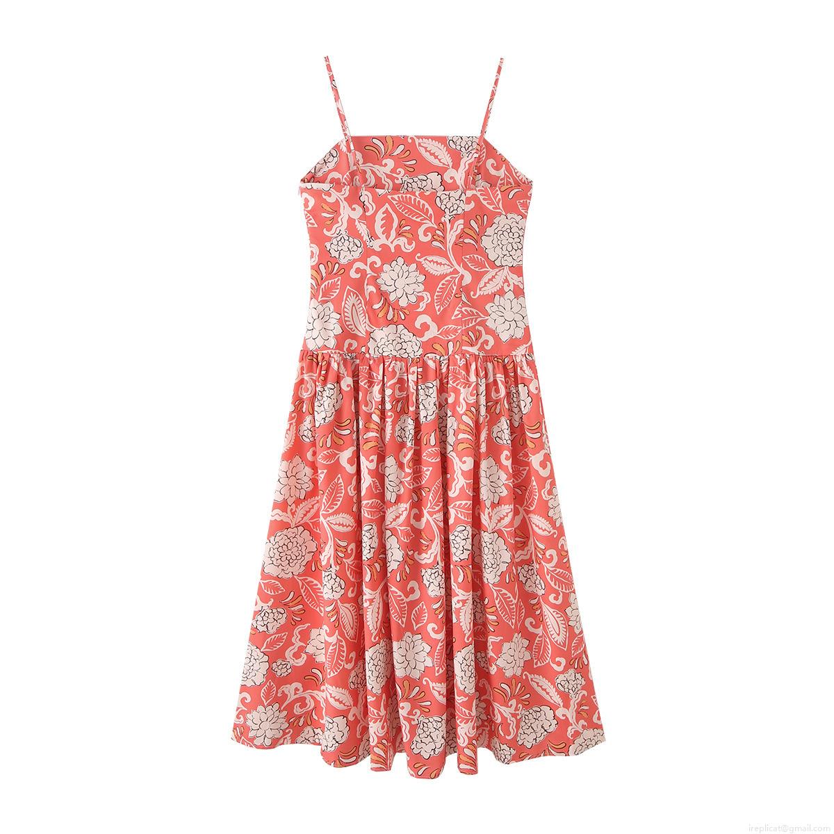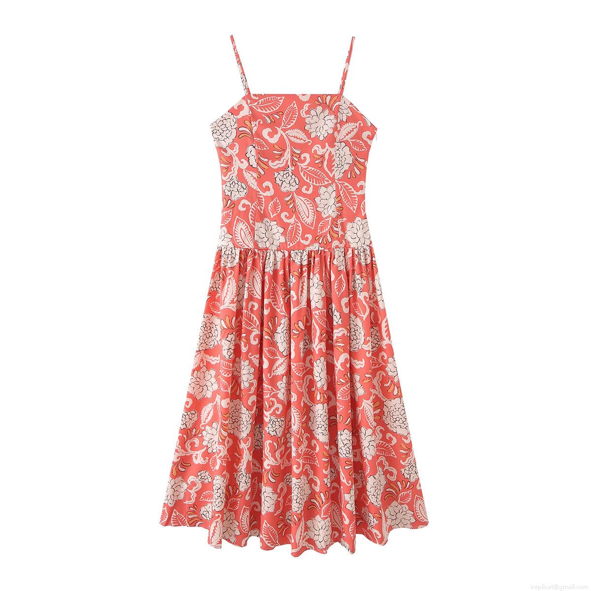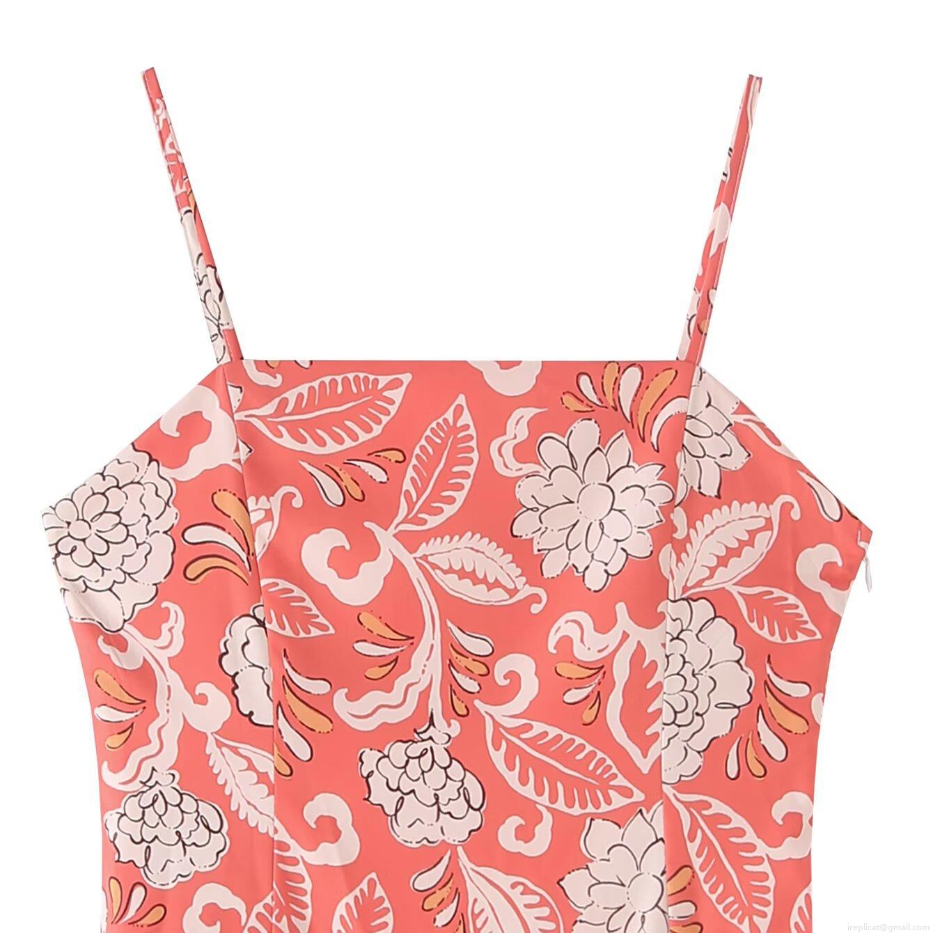 • Women's Summer Floral Print Backless Cami Dress 100% Polyester Spaghetti Strap Midi A-Line Dress For Vacation Beach Party Sexy Elegant Sundress