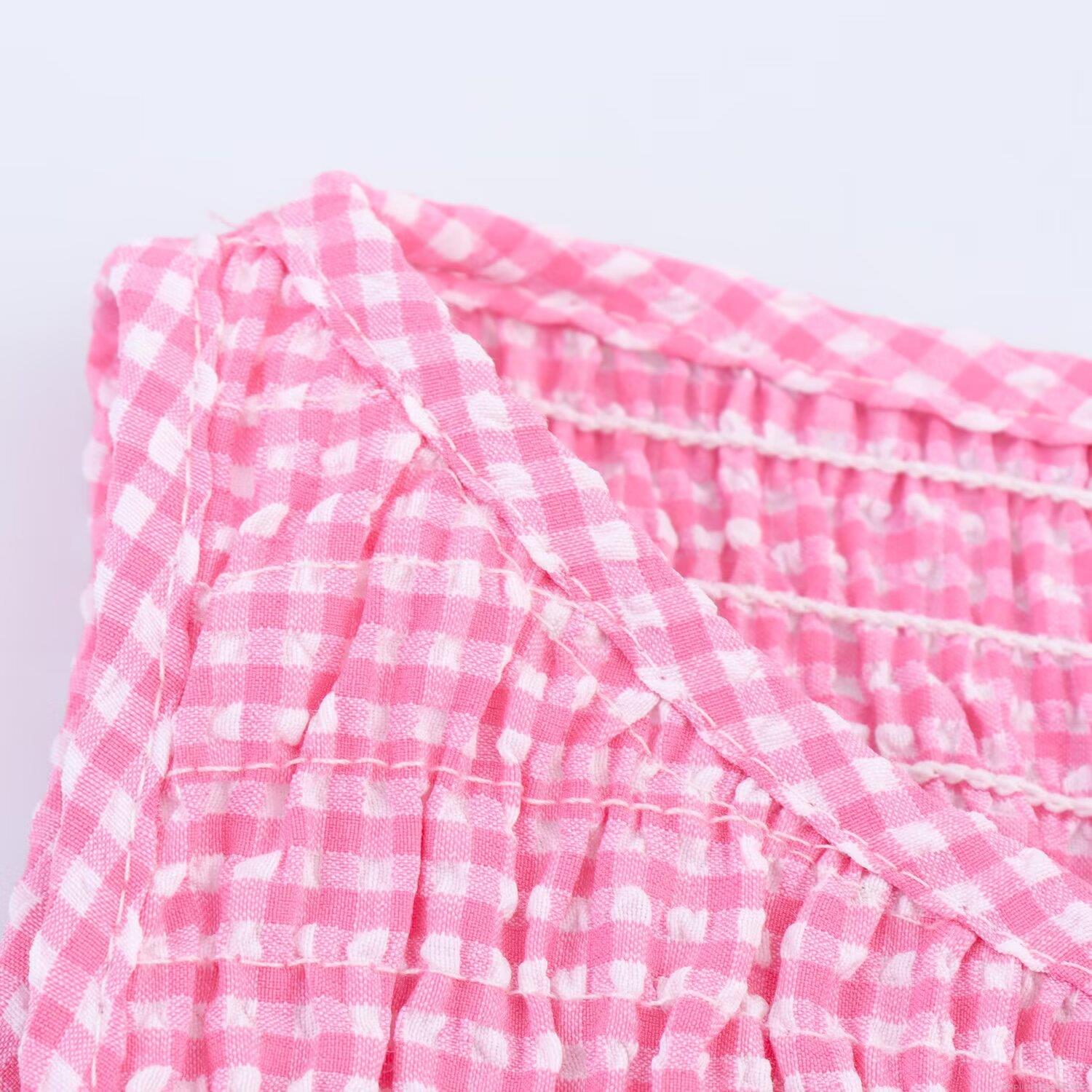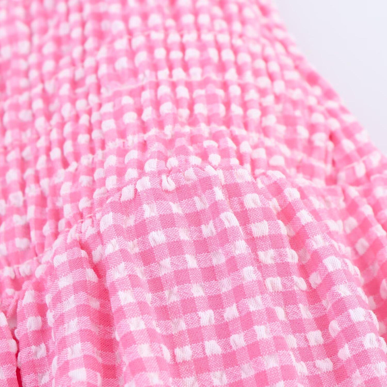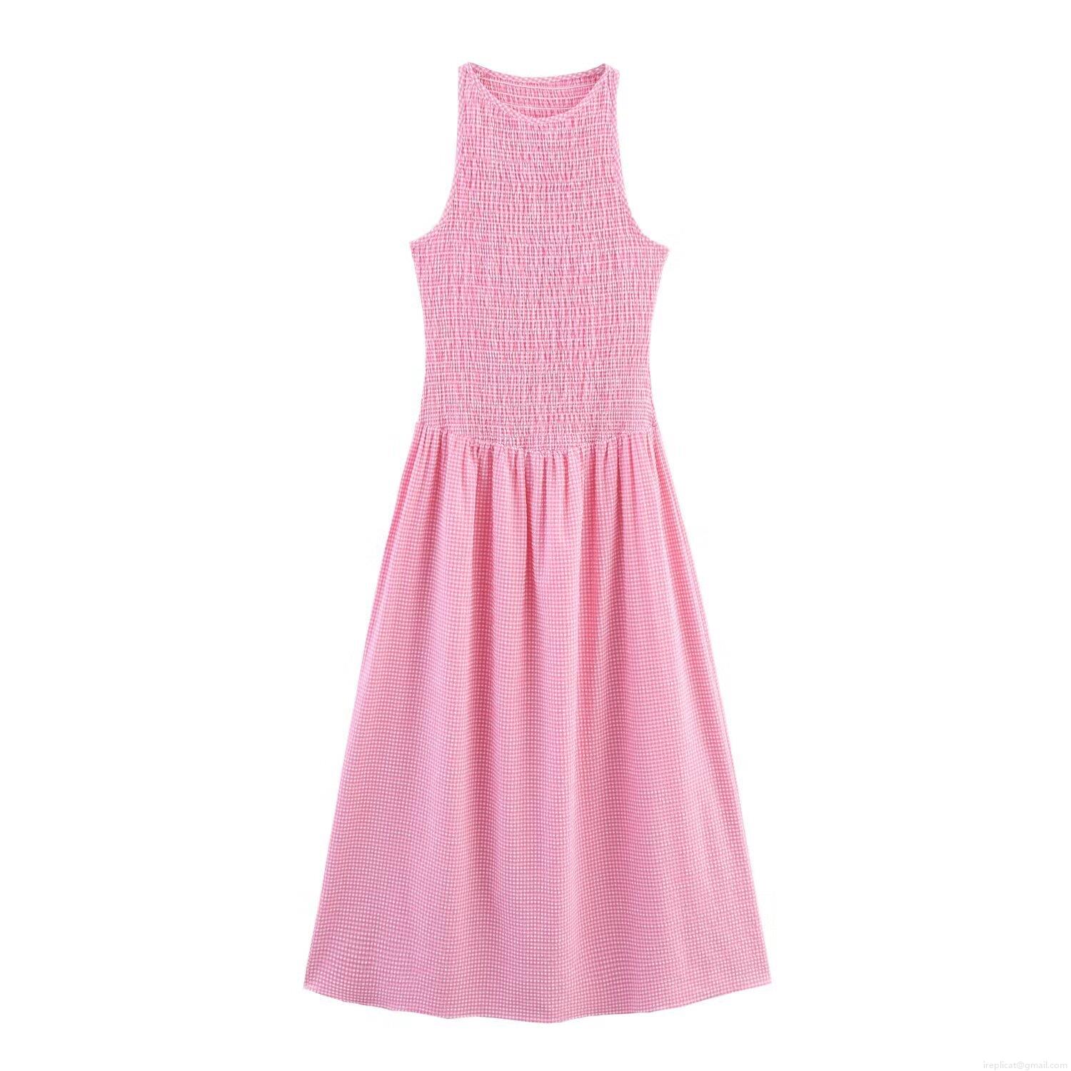 • Women's Summer Gingham Midi Dress Sleeveless Round Neck Smocking Waist Casual Vacation Street Style A-Line Linen Blend Pink White Plaid Dress