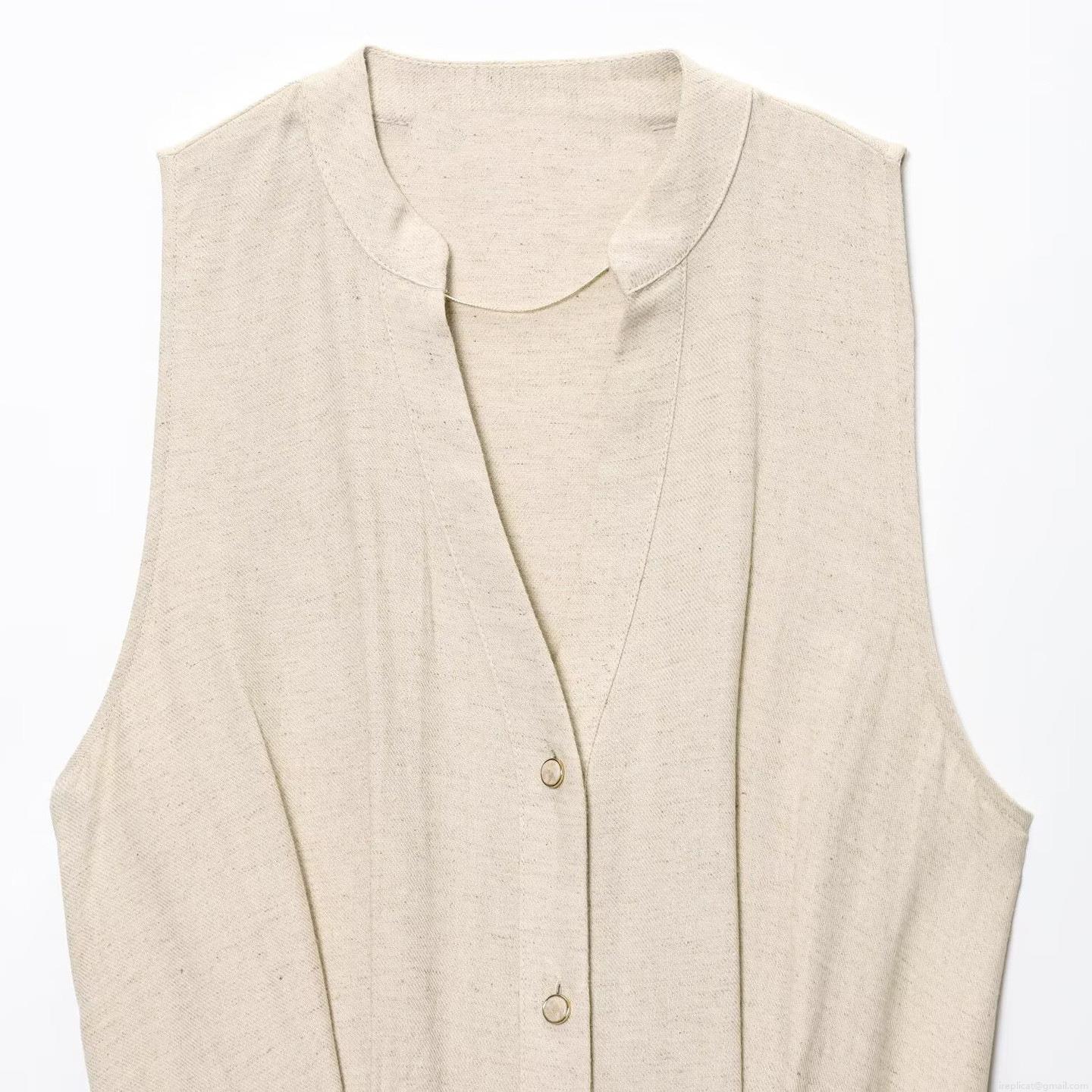 • Women's Summer Minimalist Sleeveless V Neck Button Up Midi Dress With Belt Casual Polyester Cotton A-Line Tank Dress