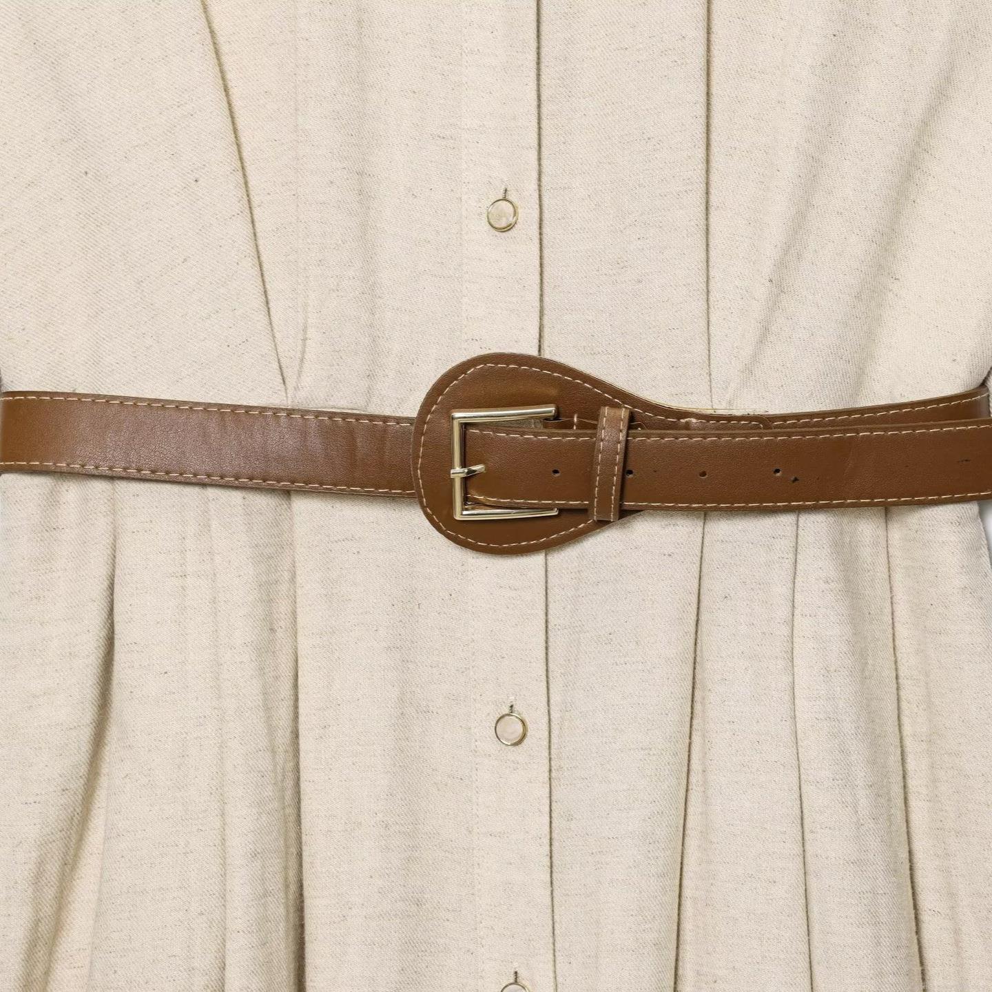 Solid Color, Splicing Design, Single-breasted Buttons, Matching Belt