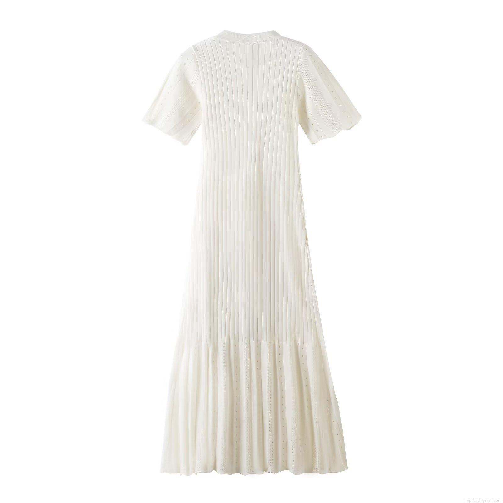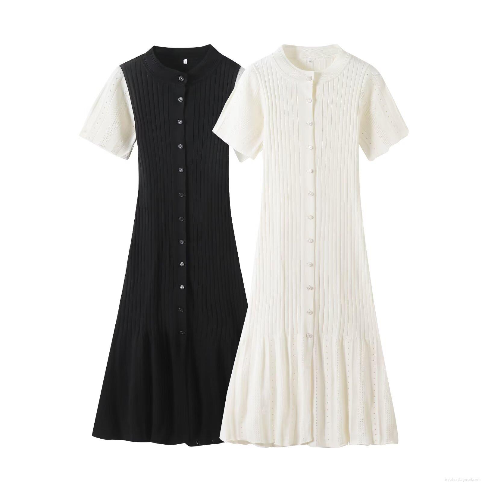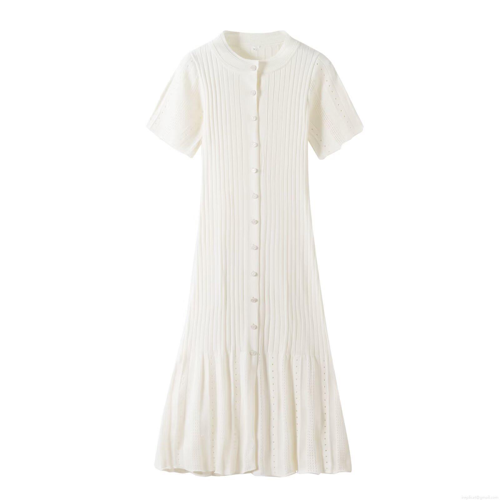 Women's Summer Short Sleeve Knit Midi Dress Button Up Slim Fit Bodycon Ribbed Knitted Dress With Pointelle Details Summer Streetwear Western Style Ladies Dress