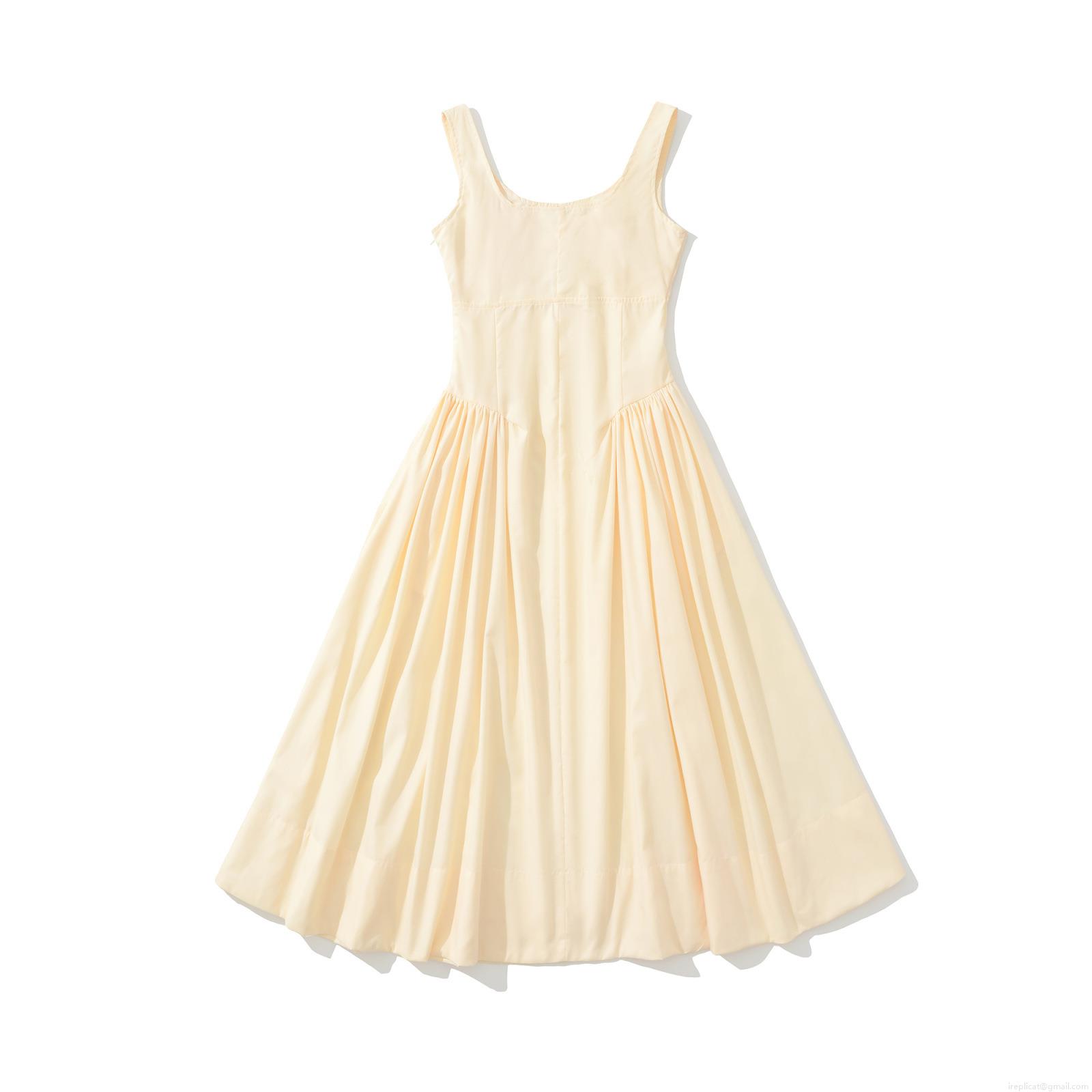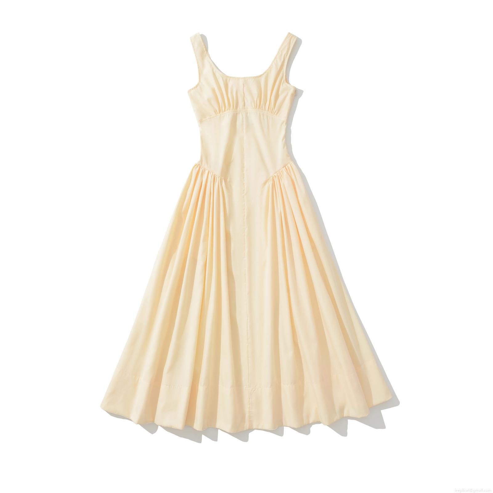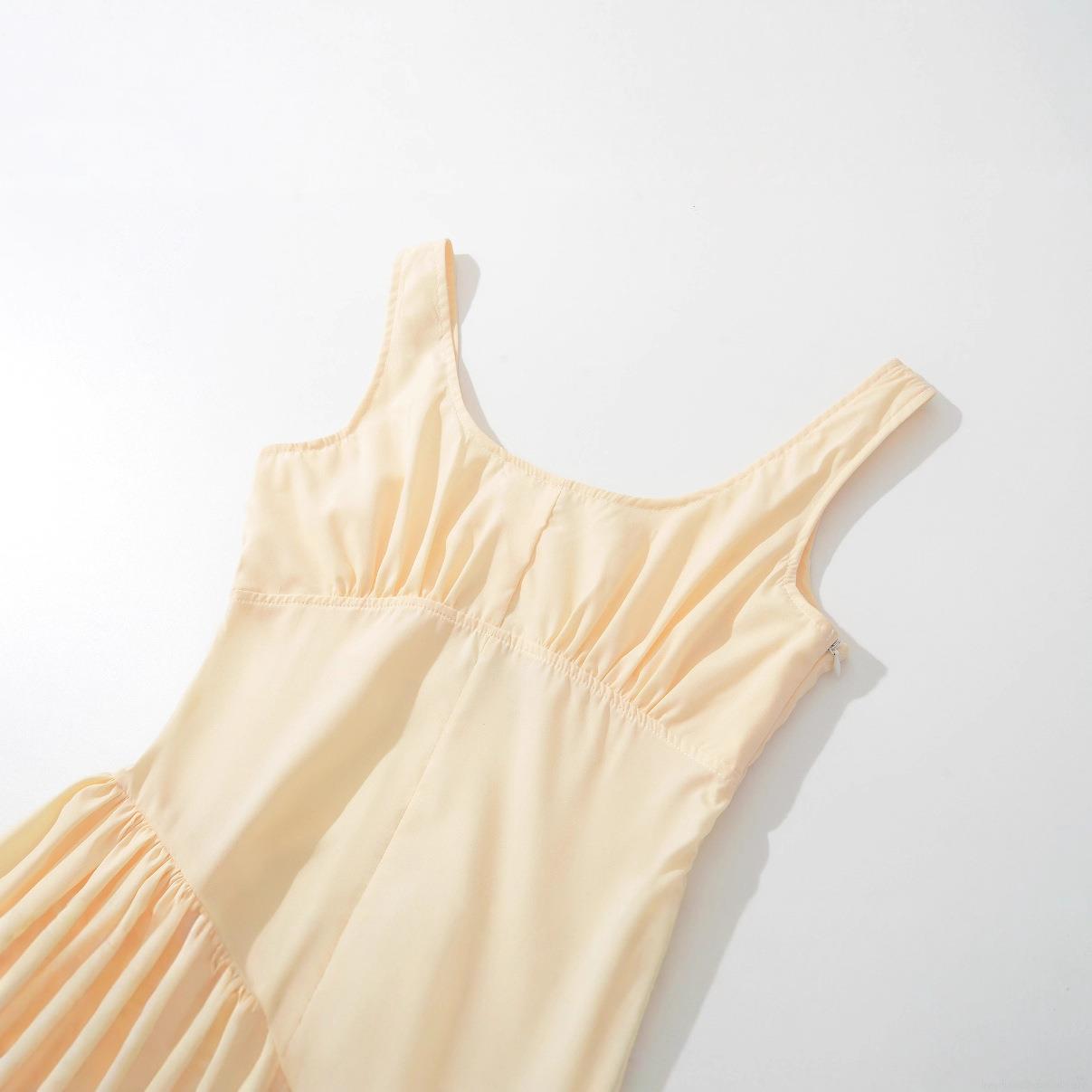 • Women's Summer Sleeveless Midi Dress Ruched Bust Slim Fit Solid Color Cream Yellow 100% Polyester Party Casual Streetwear Dress