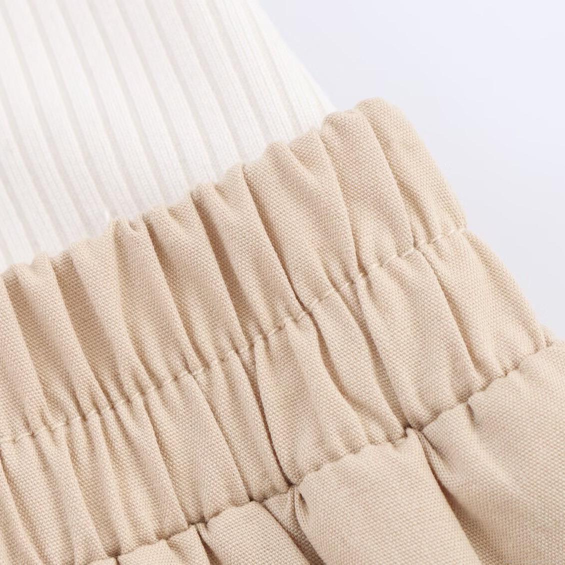 Solid Color, Splice, Color Blocking, Ribbed Texture, Contrasting Edging, Elastic Waist