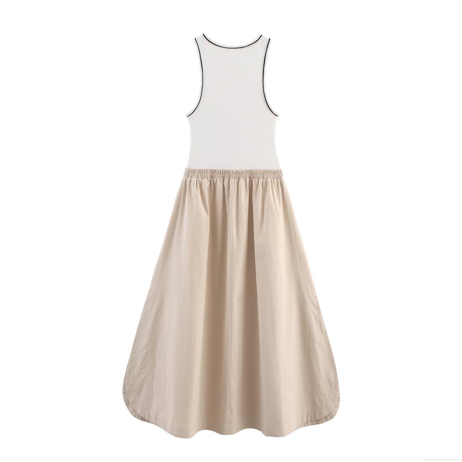 Women's Summer Sleeveless Patchwork Midi Dress Rib Knit Tank Top A-Line Contrast Color Casual Minimalist Bohemian Dress