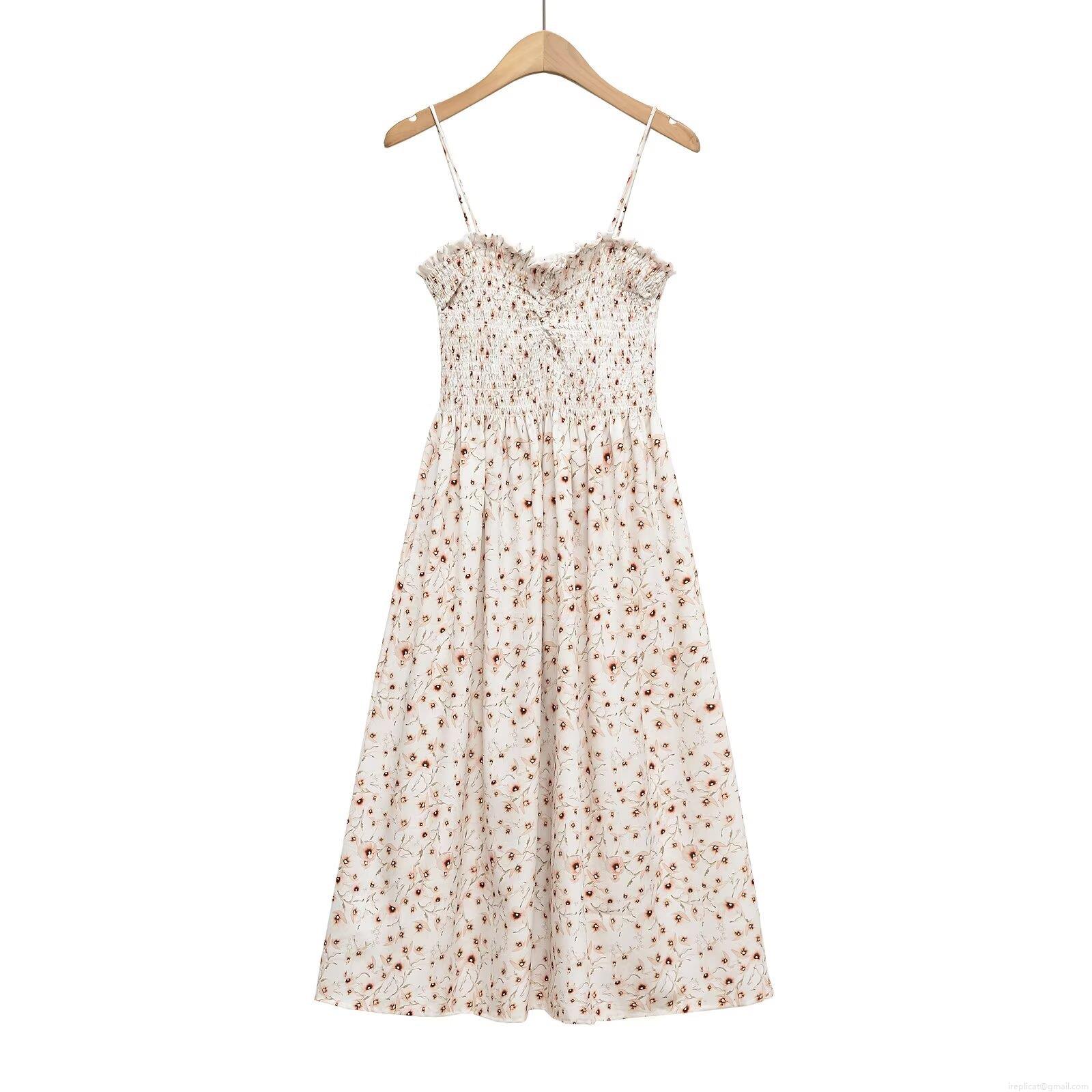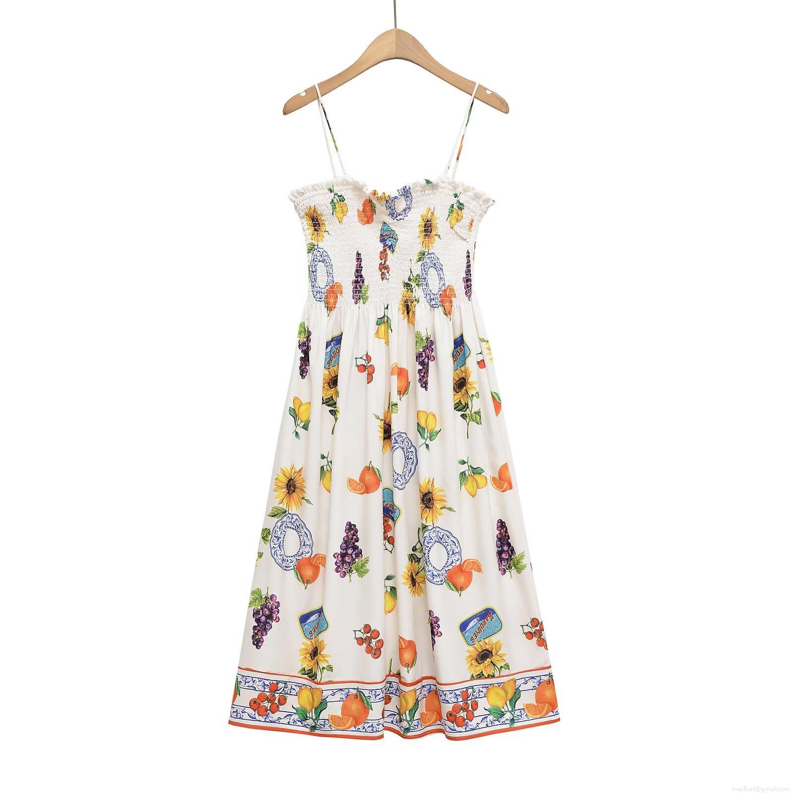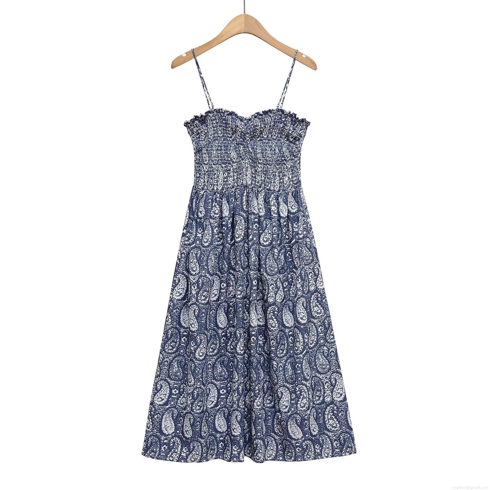 • Women's Summer Spaghetti Strap Smocked Midi Dress Bohemian Floral Fruit Paisley Print A-Line Sleeveless Vacation Beach Sun Dress