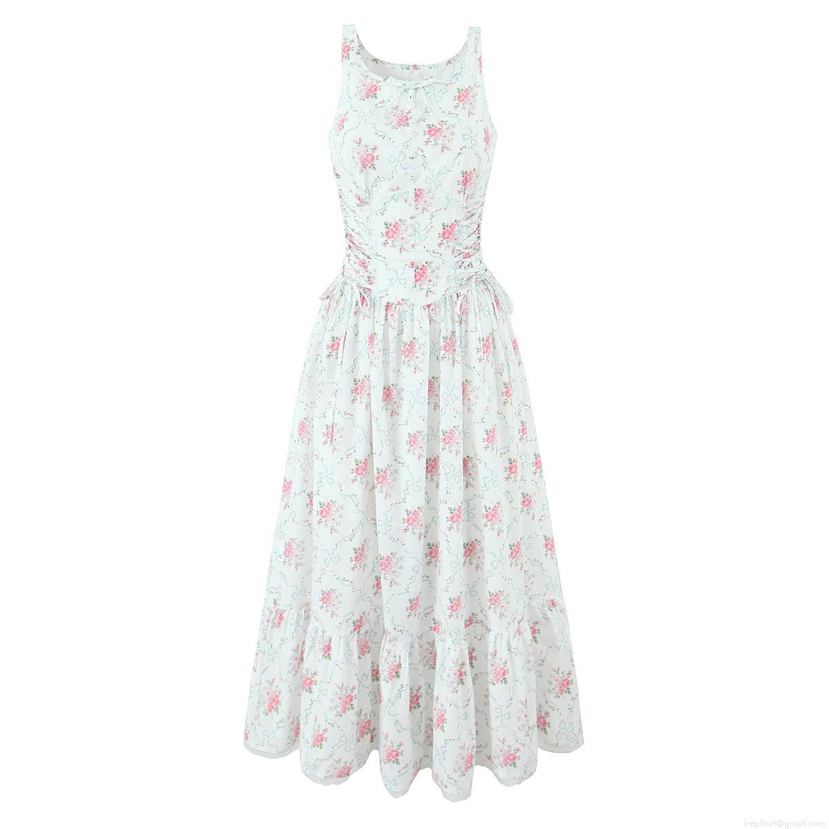 • Women's Summer Vintage Floral Print Sleeveless Maxi Dress Elegant Round Neck Lace Hem Tiered Cake Dress with Side Tie Waist for Beach Vacation