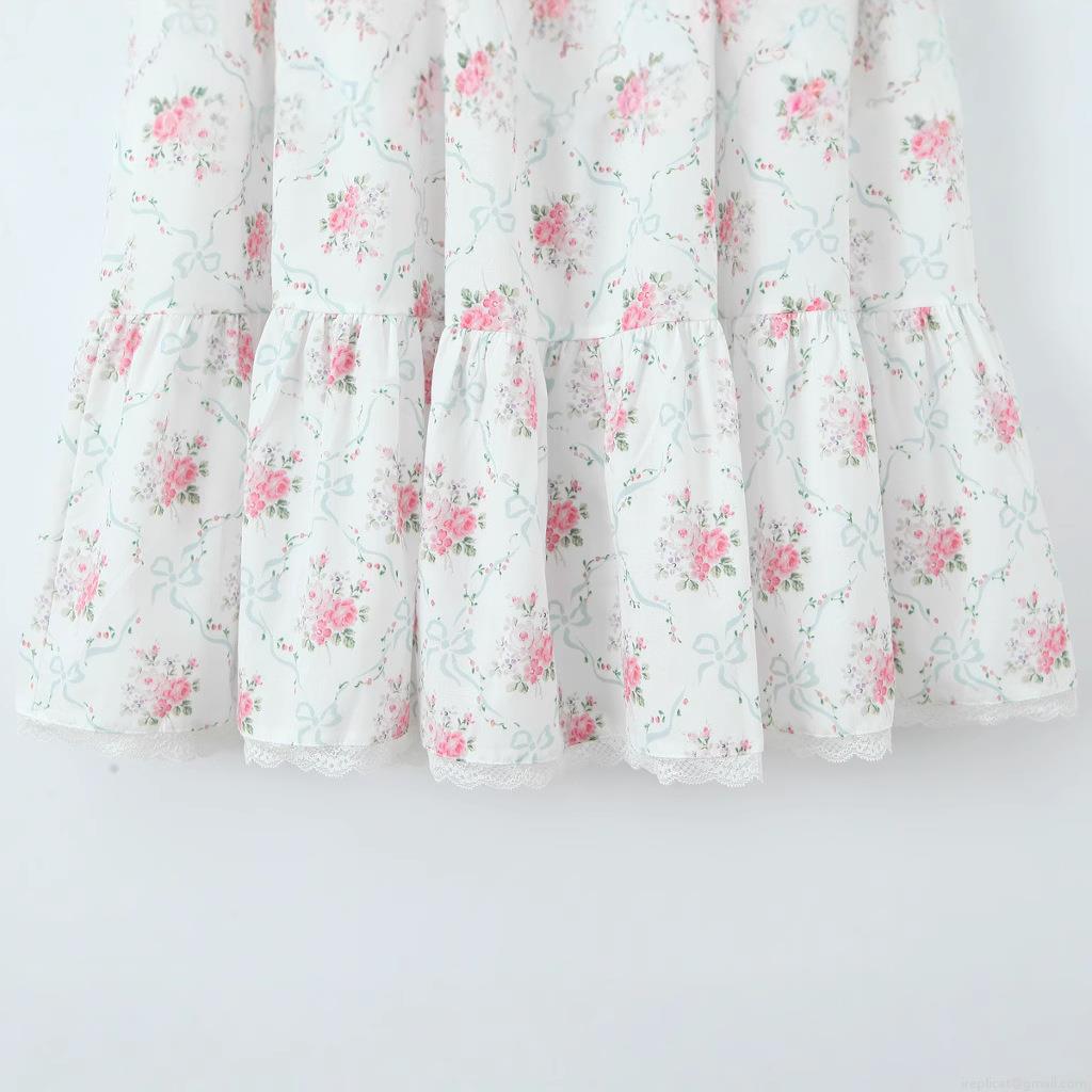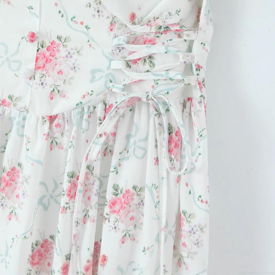 Splice, Lace, Bow, Floral Pattern, Pleats, Rose, Printing, Straps, Fabric Button