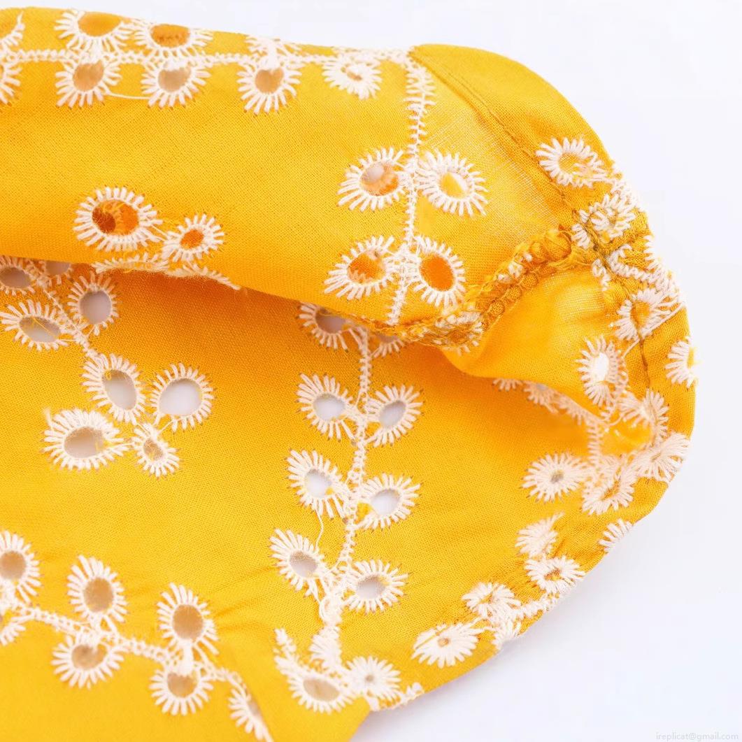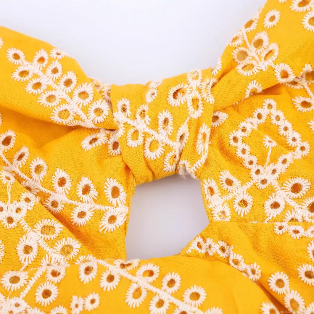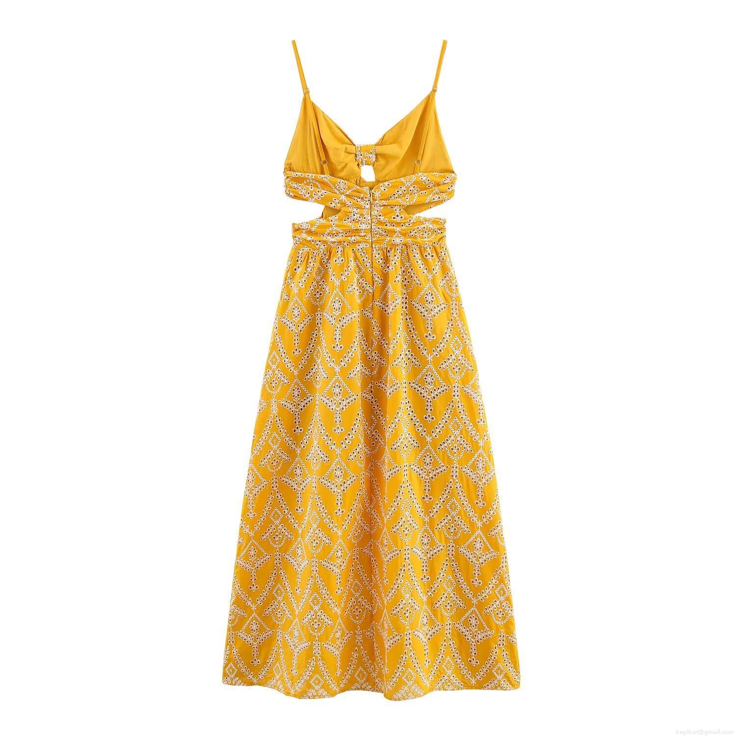 • Women's Sunflower Yellow Cotton Blend Hollow Out Embroidered Camisole Dress Sexy Backless Twist Front Midi Dress For Summer Vacation Beach Party