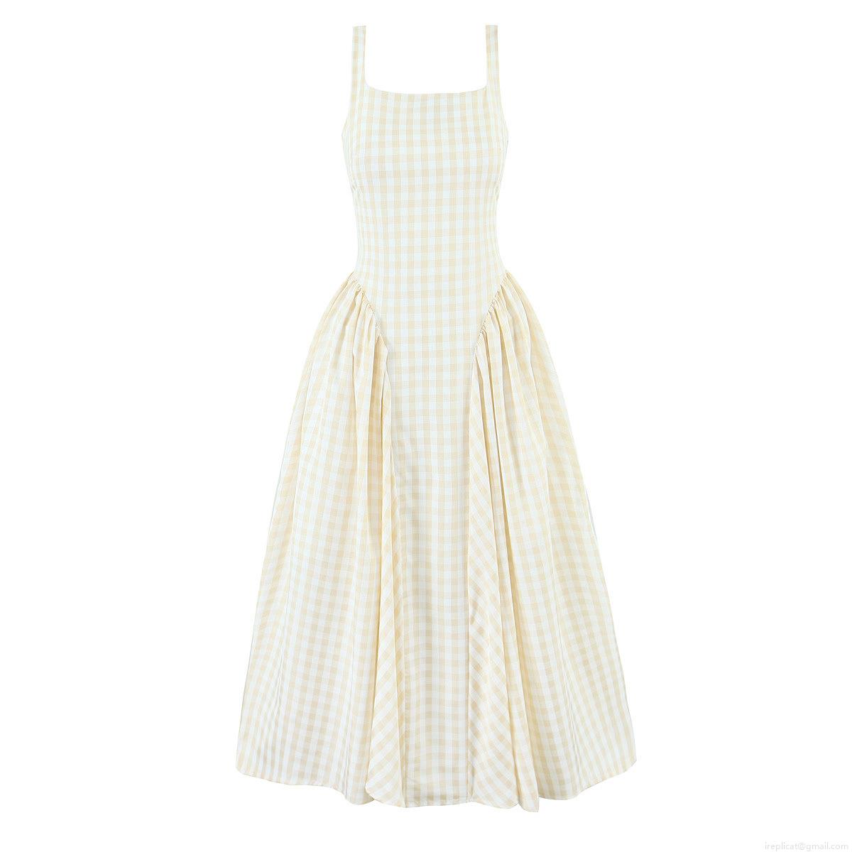 Checkered Pattern, Pleats, Straps, Backless, Pleated Splicing