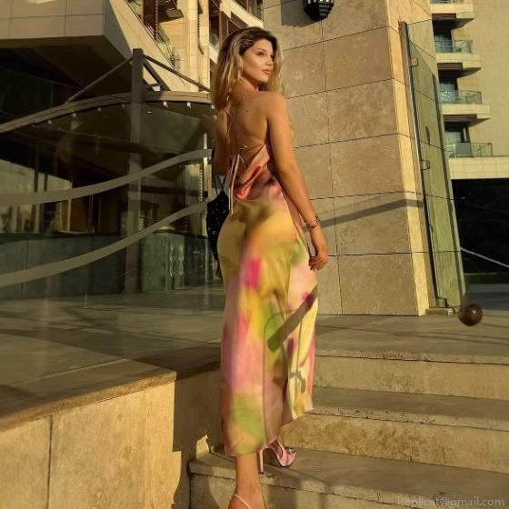 • Women's Tie Dye Satin Slip Dress Elegant Cowl Neck Backless Crossover Straps Slim Fit Polyester Midi Dress For Party Summer Vacation
