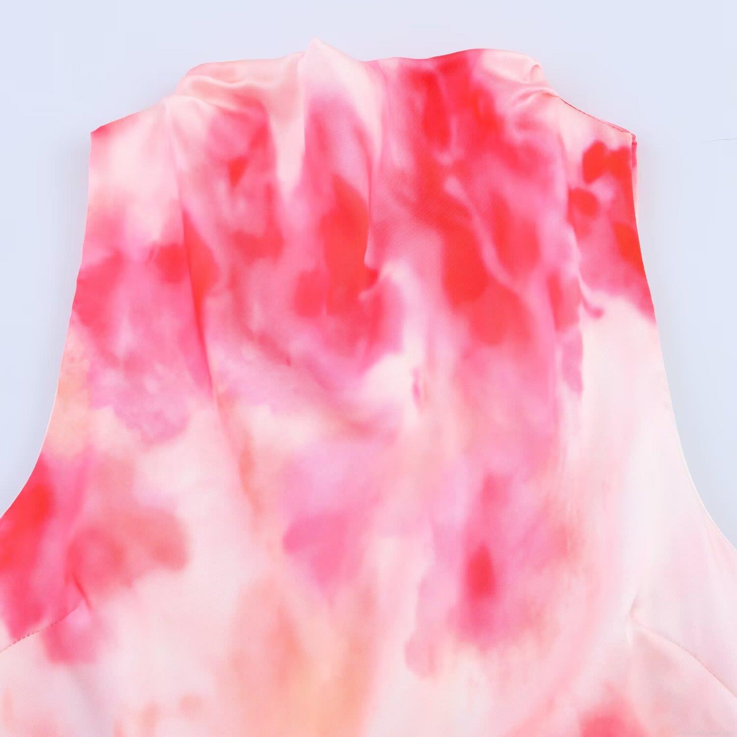 Women's Tie-Dye Satin Texture Sleeveless Midi Dress Elegant Round Neck Backless Party Streetwear Summer Dresses For Women