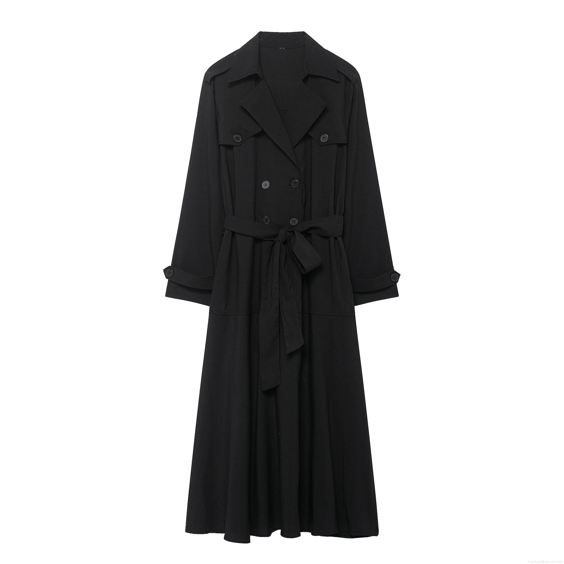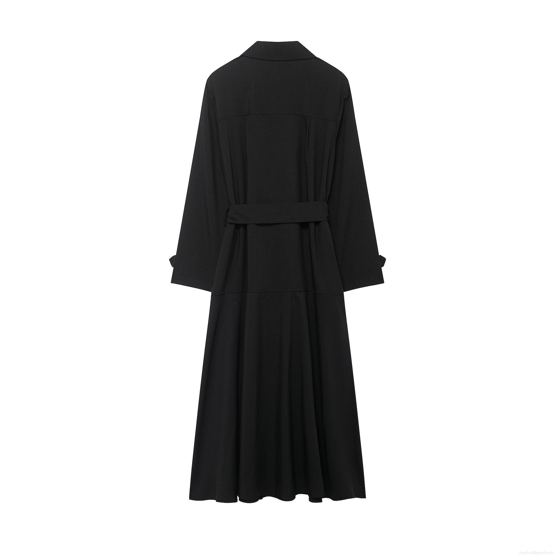 • Women's Trench Dress Double Breasted Lapel Long Sleeve Midi Dress With Belt Solid Color Polyester Street Style Casual Lady Outfit