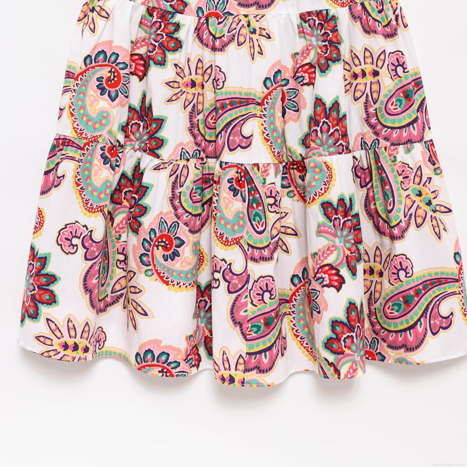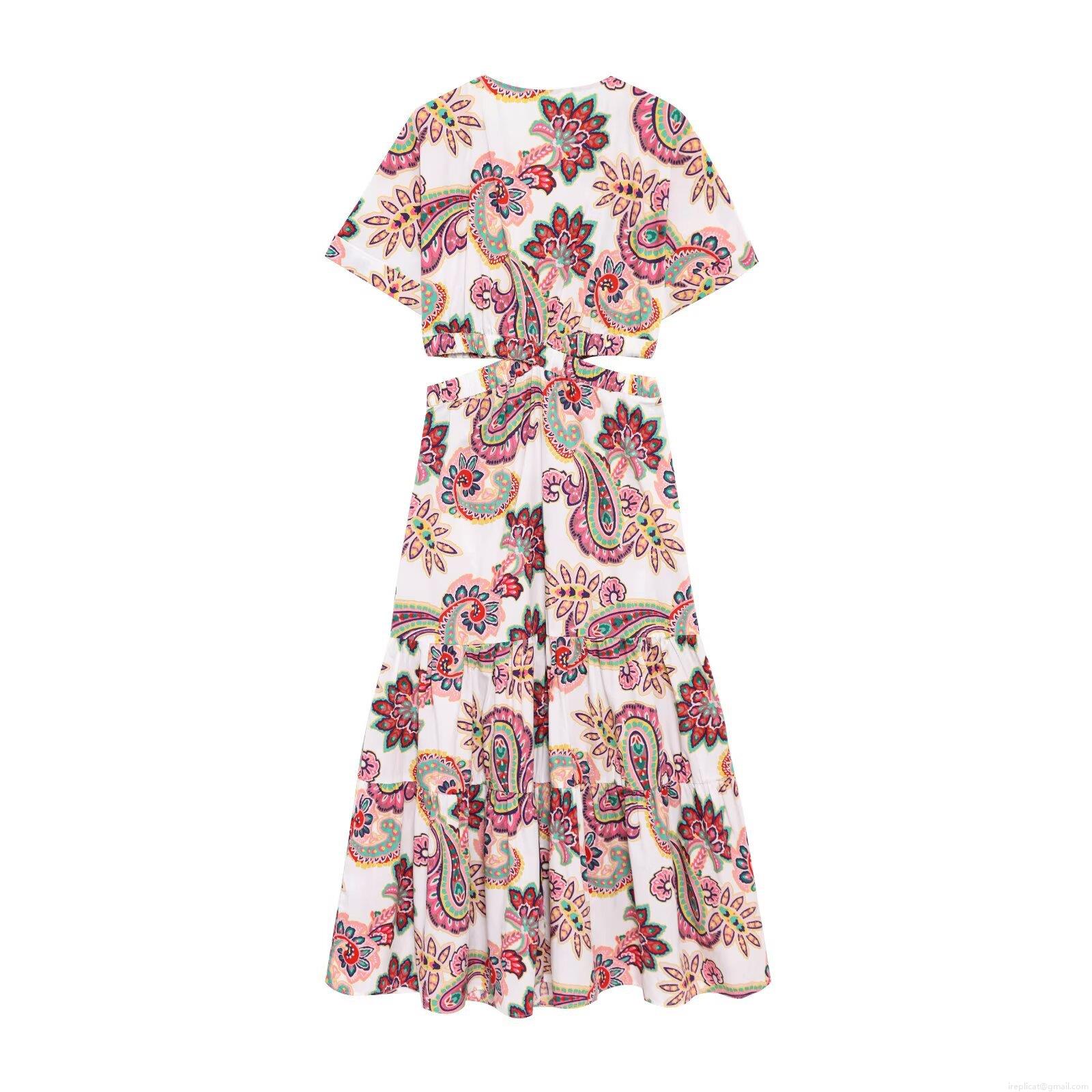 Cashew Flowers, Flowers, Knot, V-neck, Paisley Pattern, Multi-tiered Cake Skirt, Waist Cutout