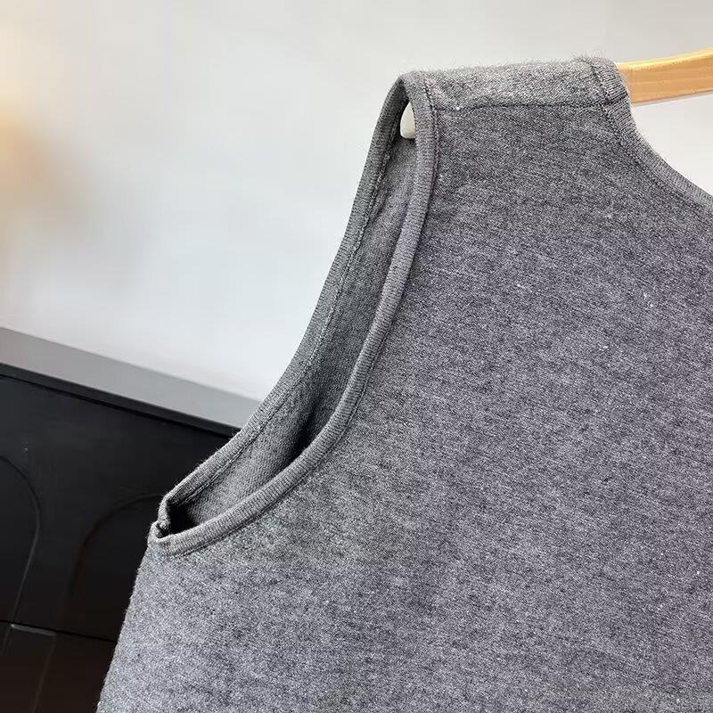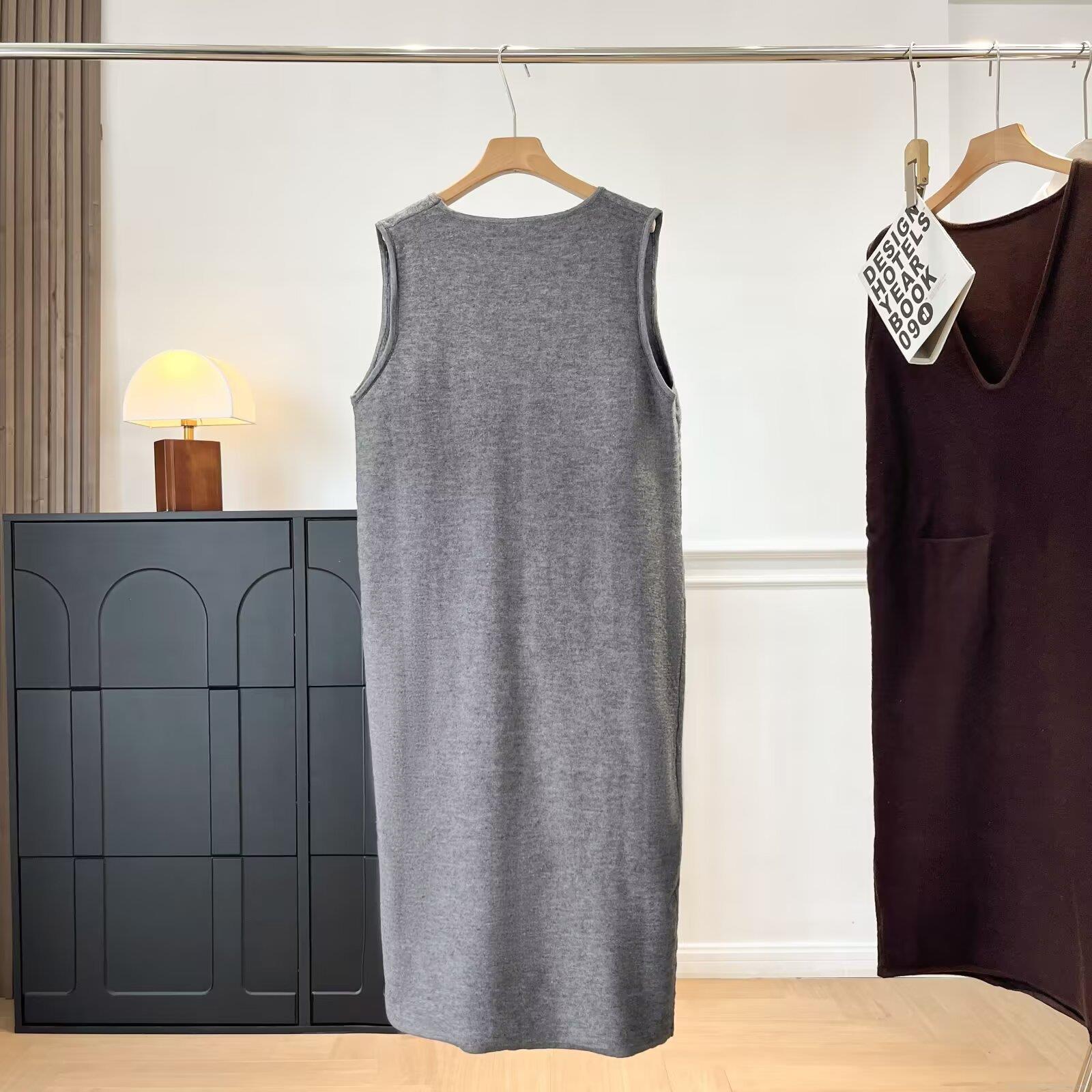 Women's V Neck Sleeveless Knit Midi Dress Minimalist Solid Color Casual Straight Vest Dress With Pockets Autumn Pullover Fashion Knitwear
