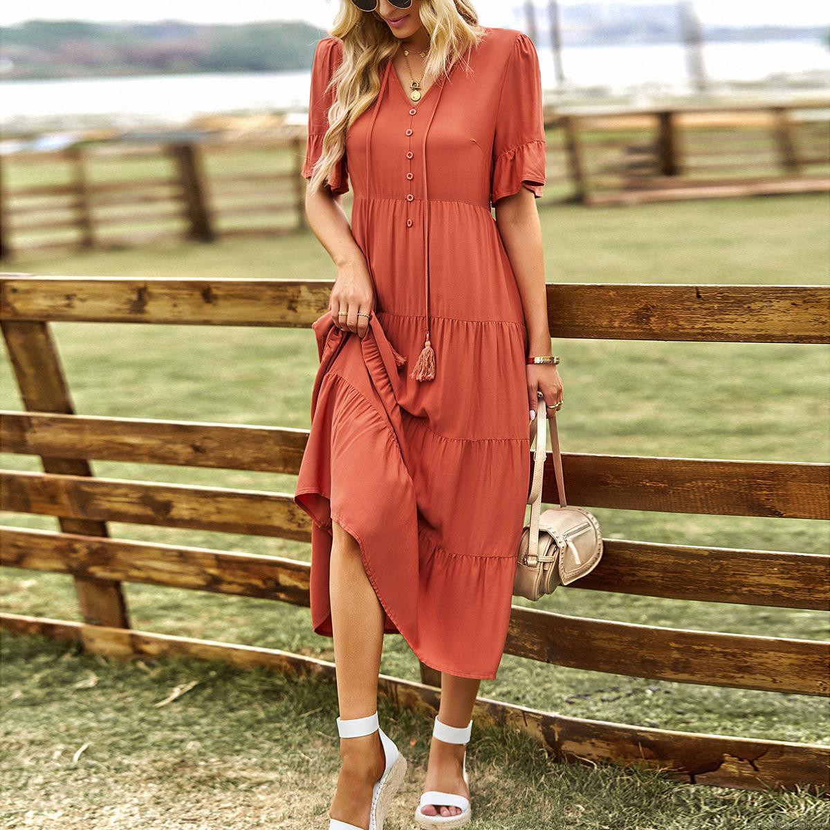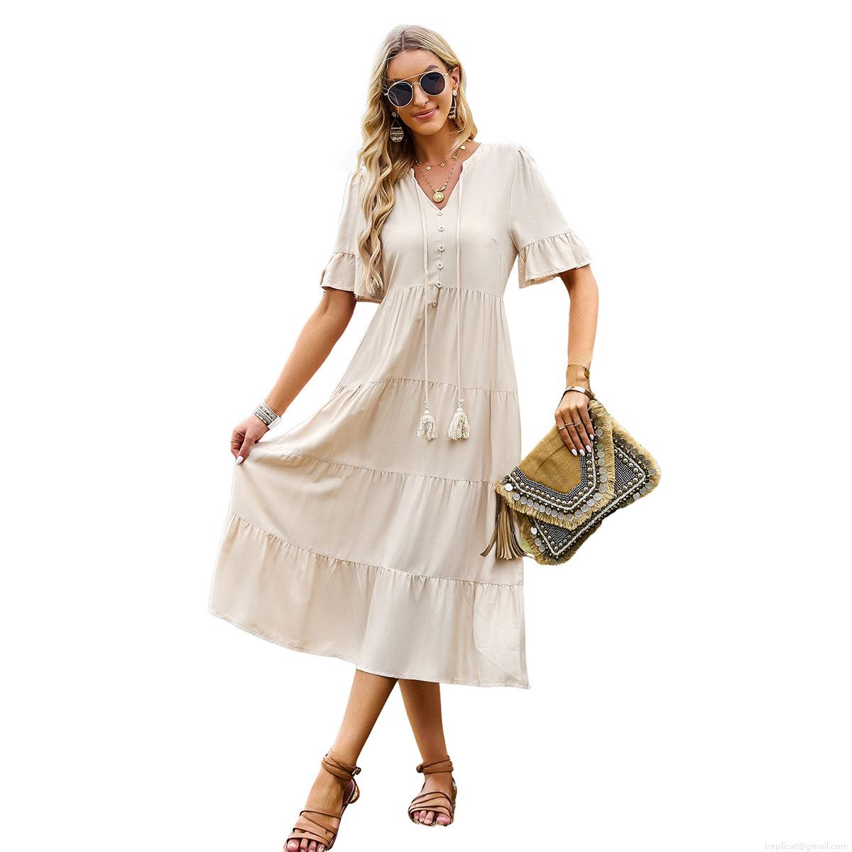 Solid Color, Tassel, Pleats, Ruffles, Cake Skirt, Button Decoration