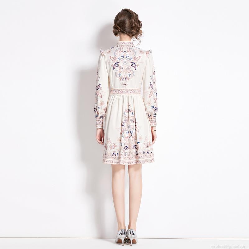 • Women's Vintage Palace Style V-Neck Paisley Print Chiffon Dress Elegant Lantern Sleeve Single-Breasted Waist-Cinched Midi Dress for Commuting Dating Party