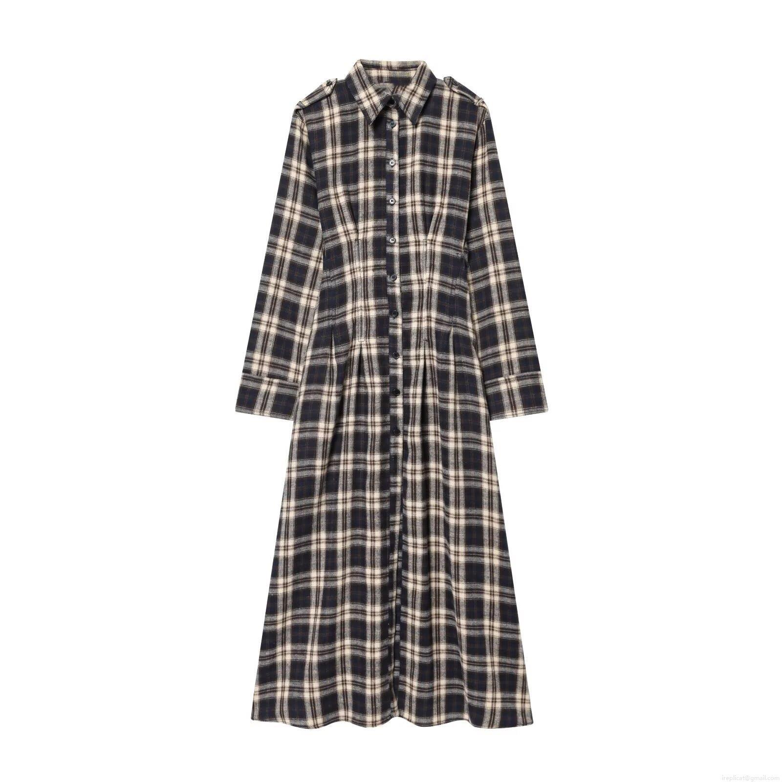 • Women's Vintage Plaid Long Sleeve Midi Dress Button Down Lapel Shirt Dress Pleated A-Line Casual Dress for Winter Autumn Fashion Comfortable Gown