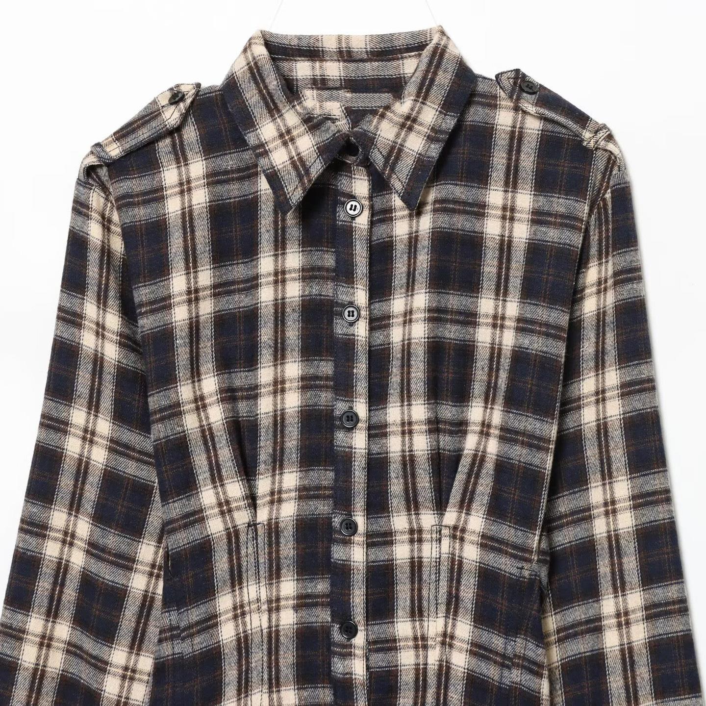 Gingham, Waist shaping, Color Blocking, Shoulder Epaulettes, Lapel, Pleats, Single-breasted