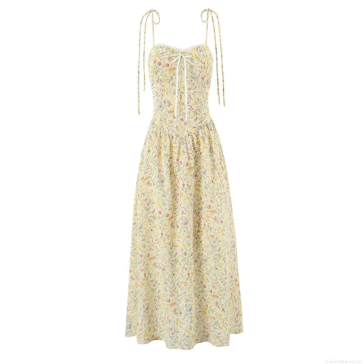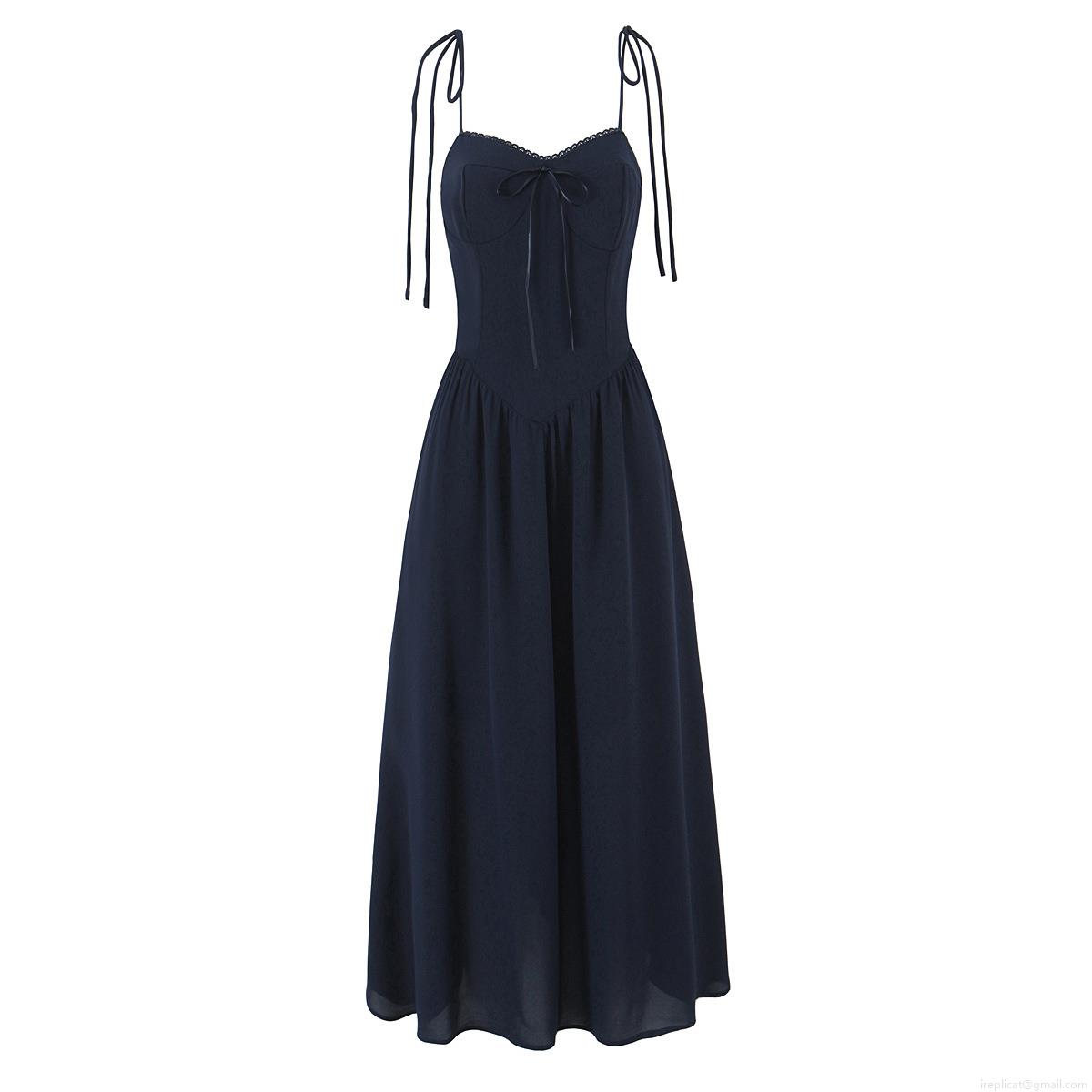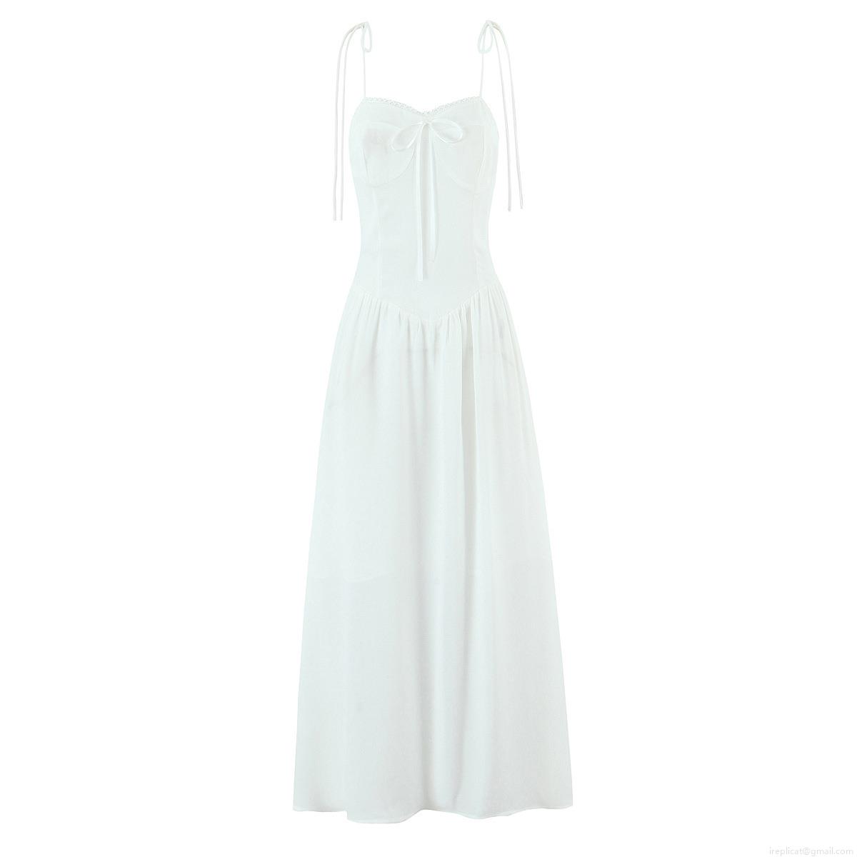 • Women's V-Neck Cami Dress Sexy Bow Tie Spaghetti Strap Polyester Sundress Floral Print White Navy Blue Summer Maxi Dress for Vacation Beach Party