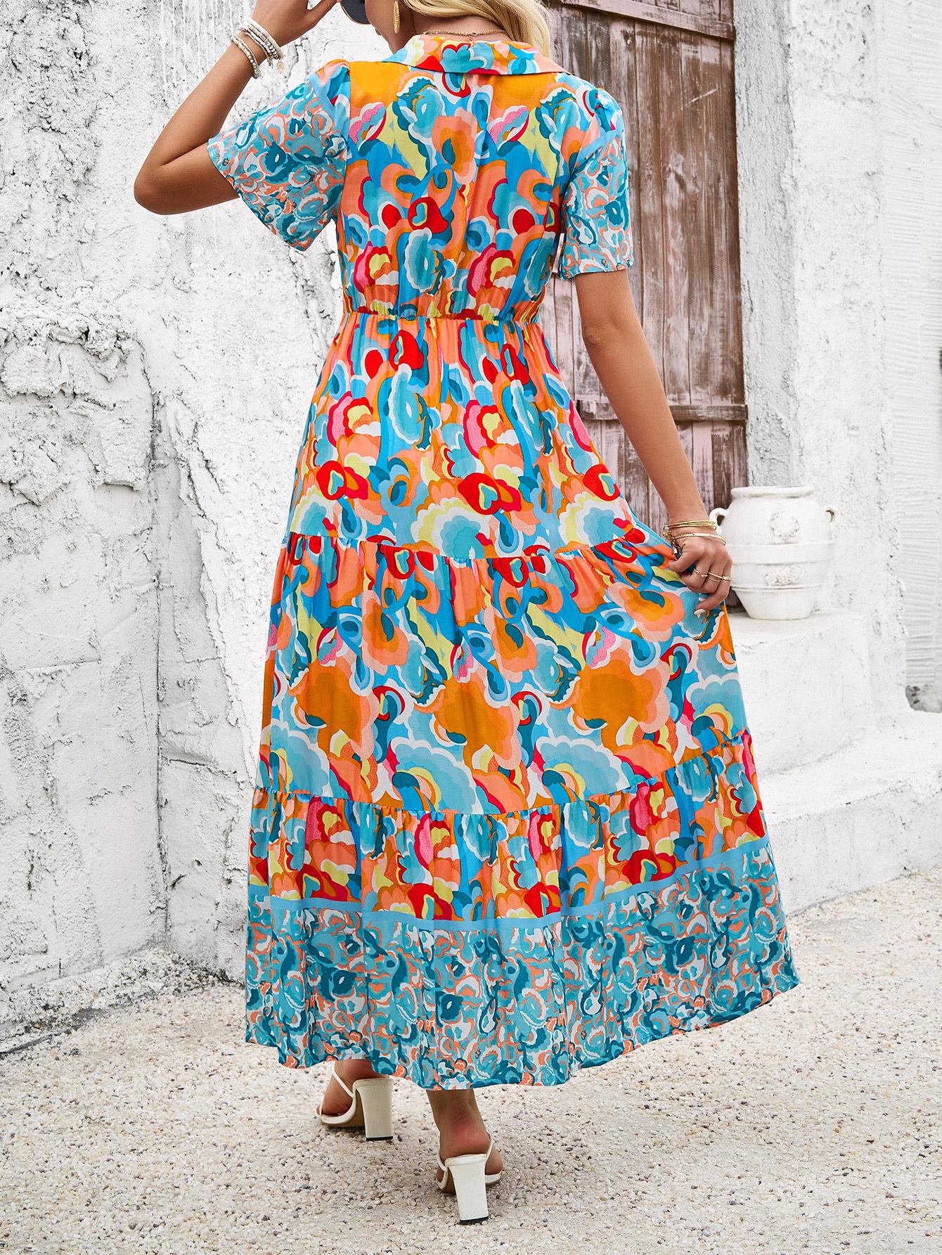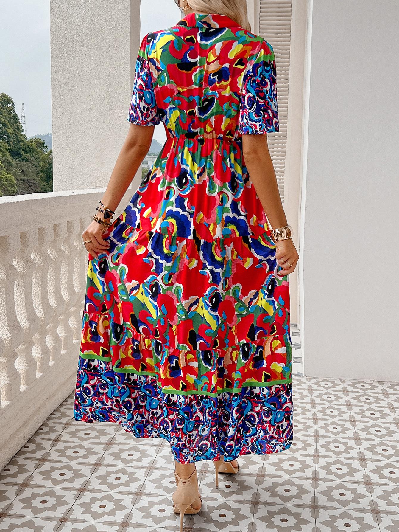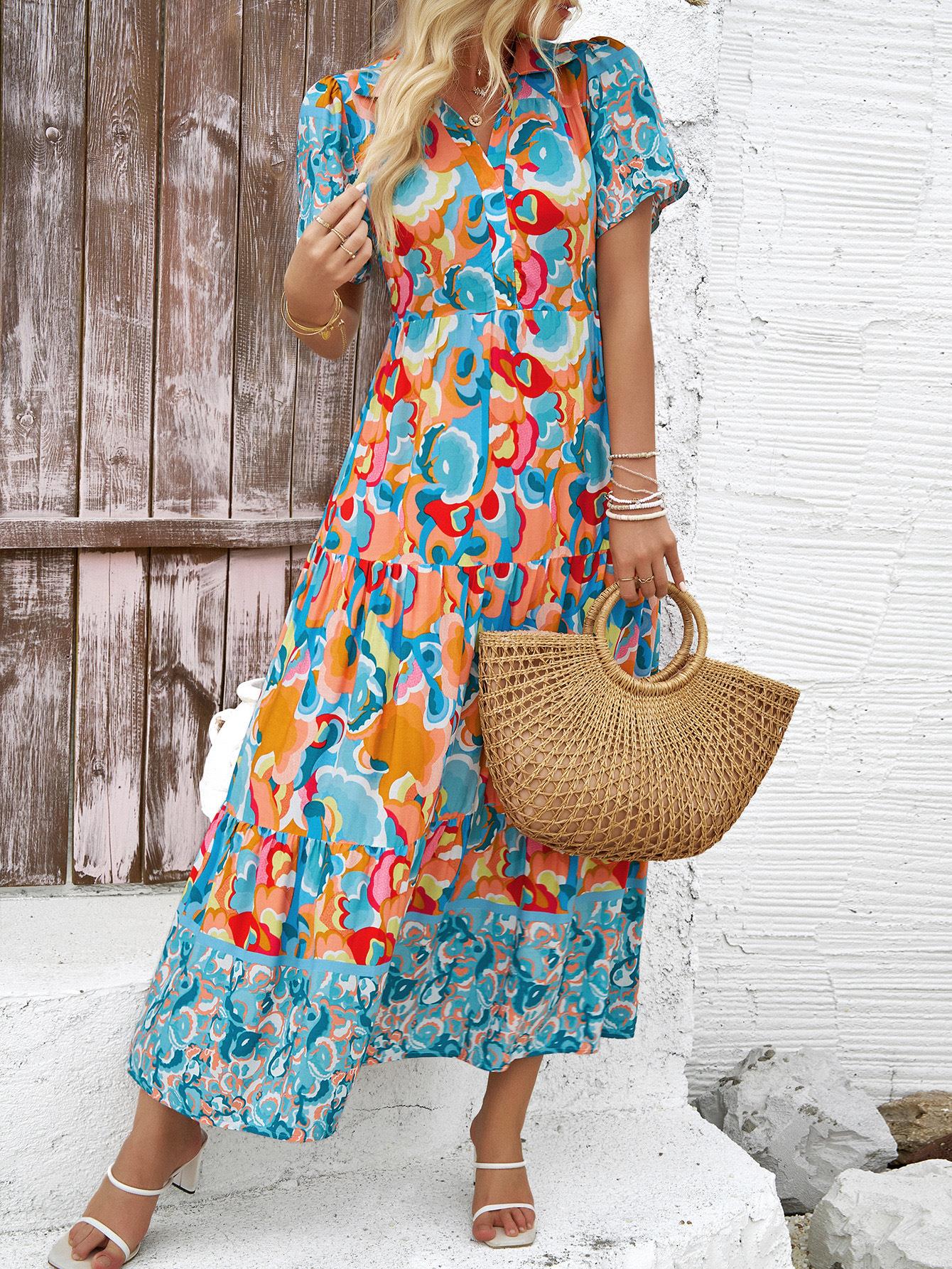 • Women's V-Neck Short Sleeve Viscose Midi Dress Casual Abstract Print Tiered Skirt Beach Vacation A-Line Dresses For Summer Party