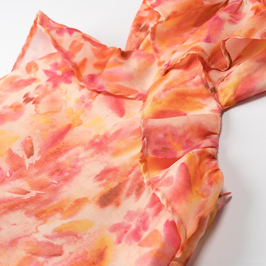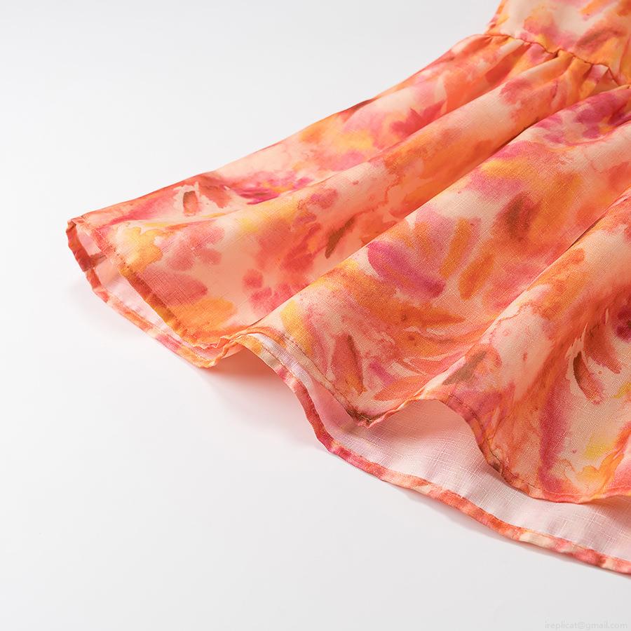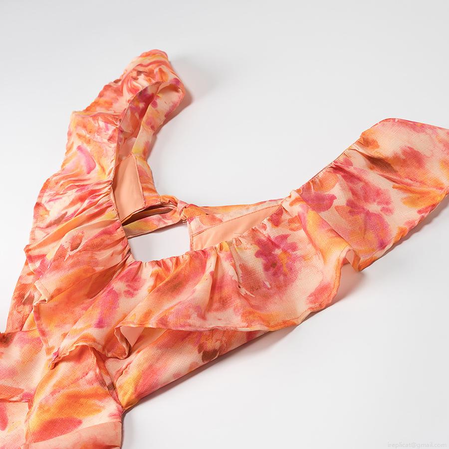 Bow, Floral Pattern, Pleats, Ruffles, Lace, Waist Cutout, Abstract Ink Wash Pattern