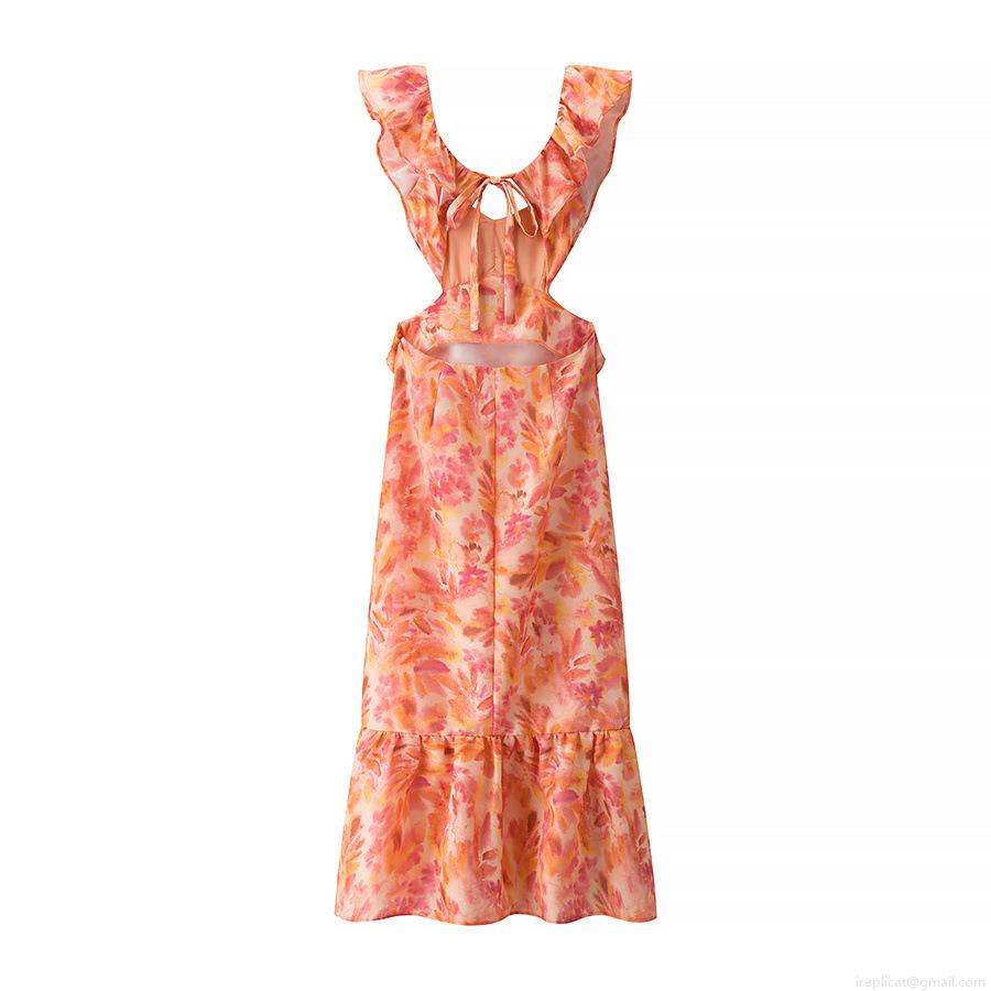 • Women's V-Neck Sleeveless Floral Midi A-Line Dress Resort Style Sexy Cut-Out Backless Bow Tie Ruffle Trim Summer Vacation Beach Party Sundress
