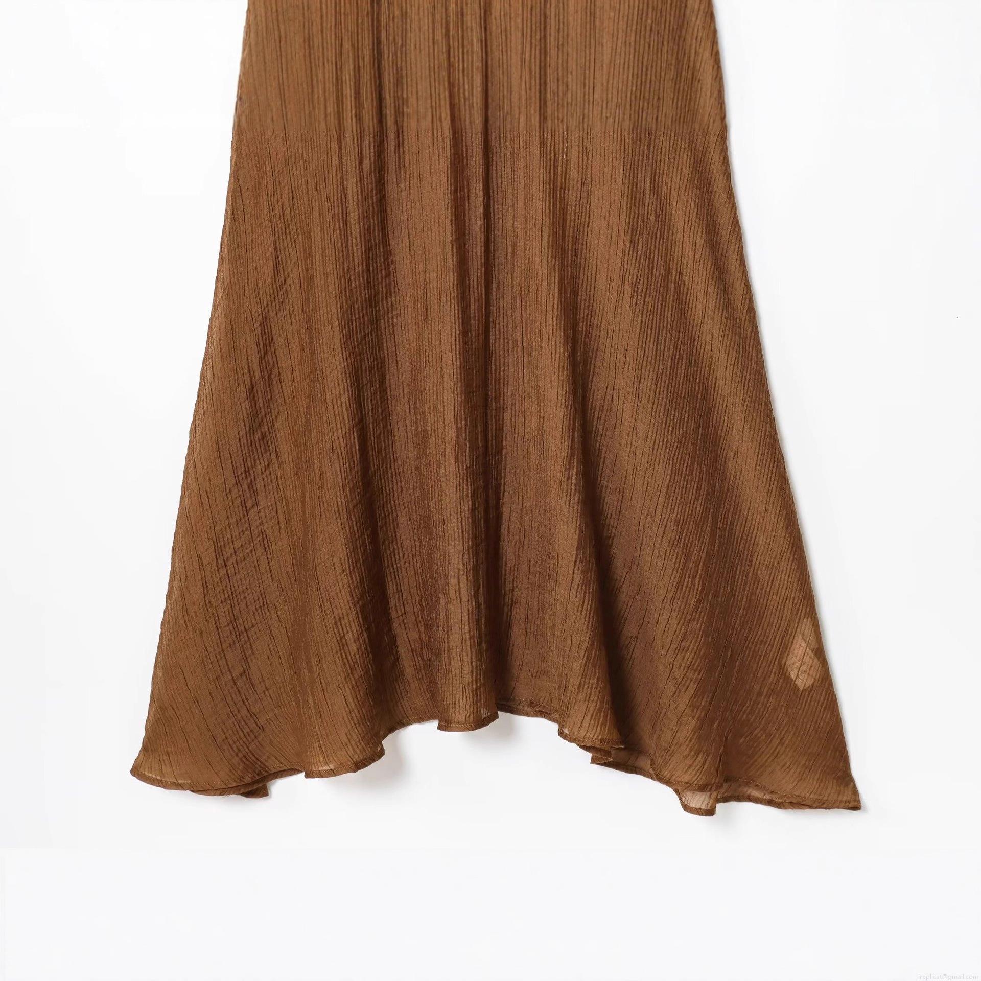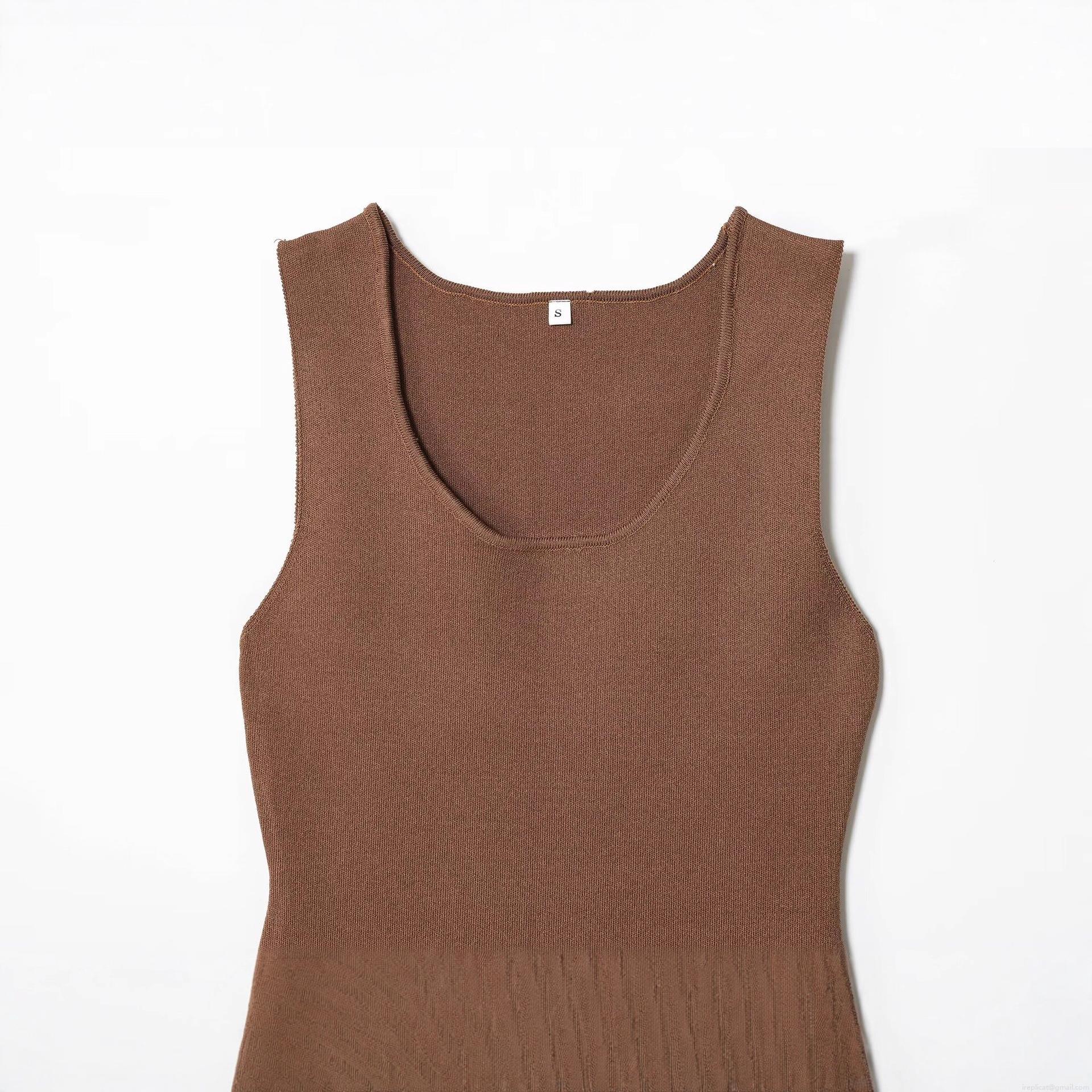 Women's Western Style Sleeveless V-Neck Knit Patchwork Midi Dress With Asymmetrical Pleated Hem Elegant Solid Camel Brown Long Dress For Daily Casual Autumn
