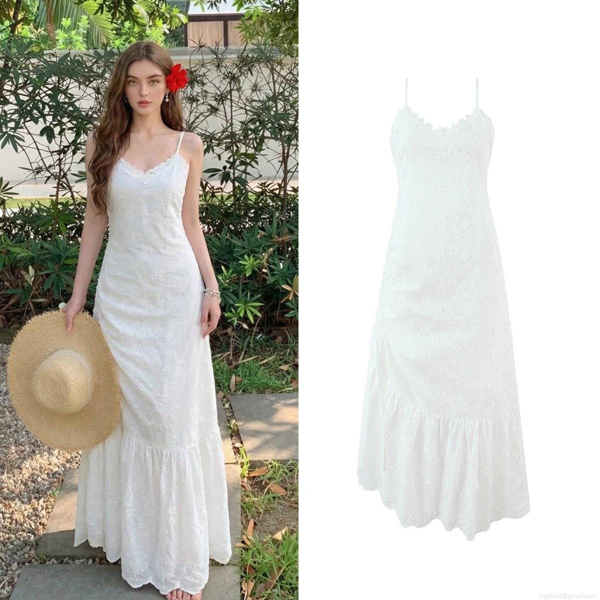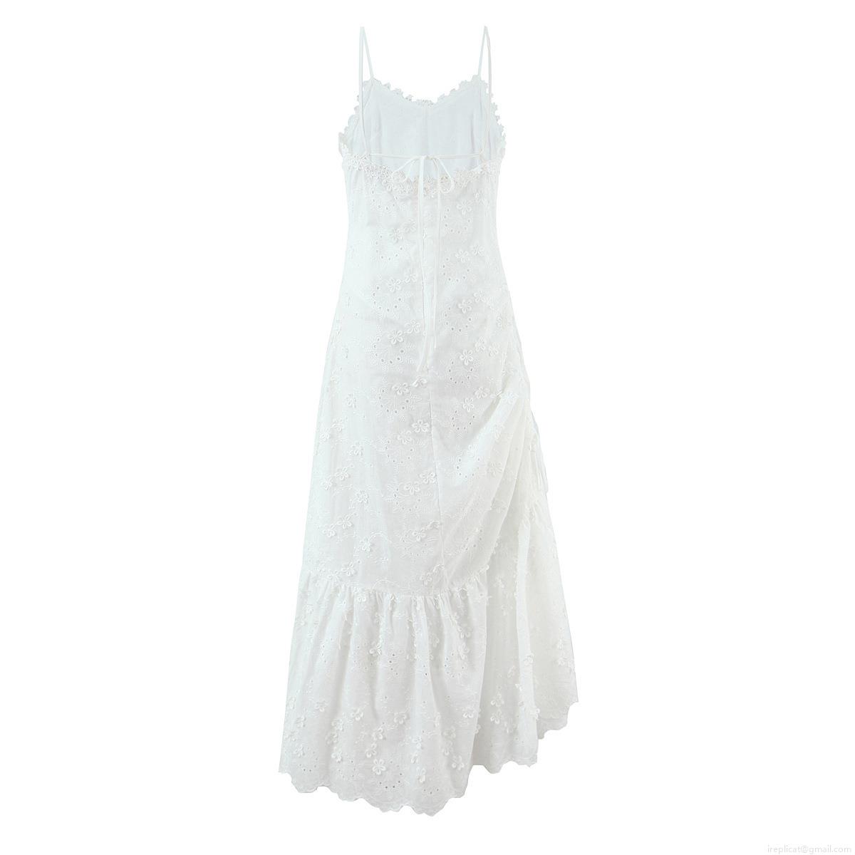 • Women's White 100% Cotton Embroidery Cami Midi Dress Sexy Hollow Out Lace Bohemian Vacation Sleeveless Ruffle Hem A-Line Dress