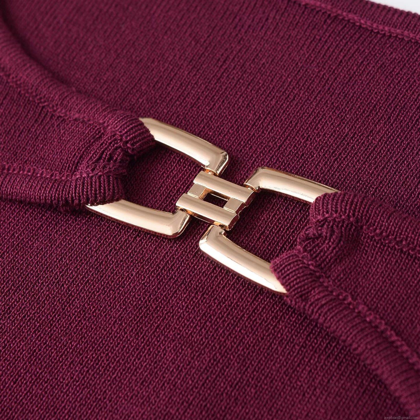 • Women's Wine Red Knit Midi Dress With Hollow Out Design Metal Buckle Sleeveless Round Neck Slim Fit Winter Bodycon Party Dress