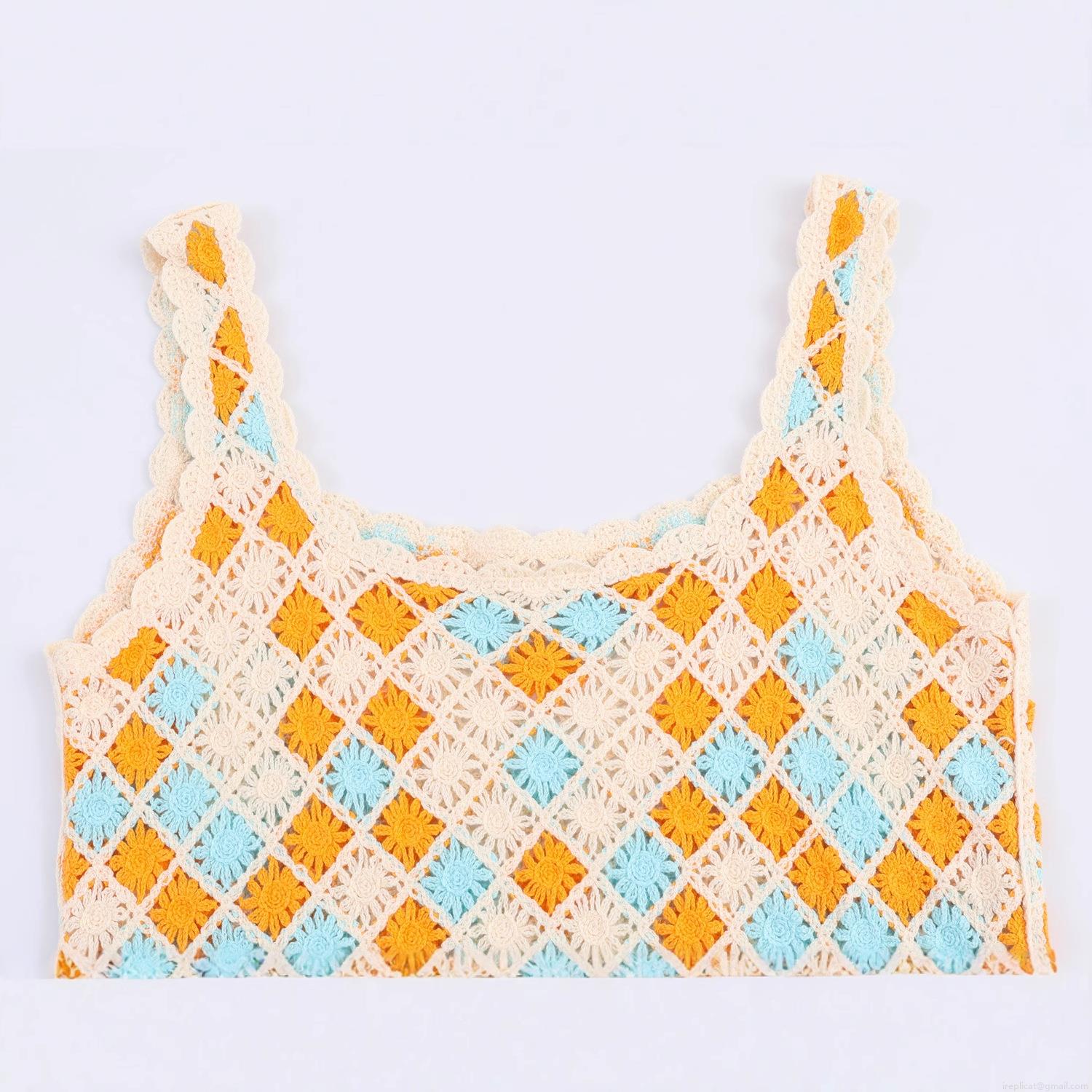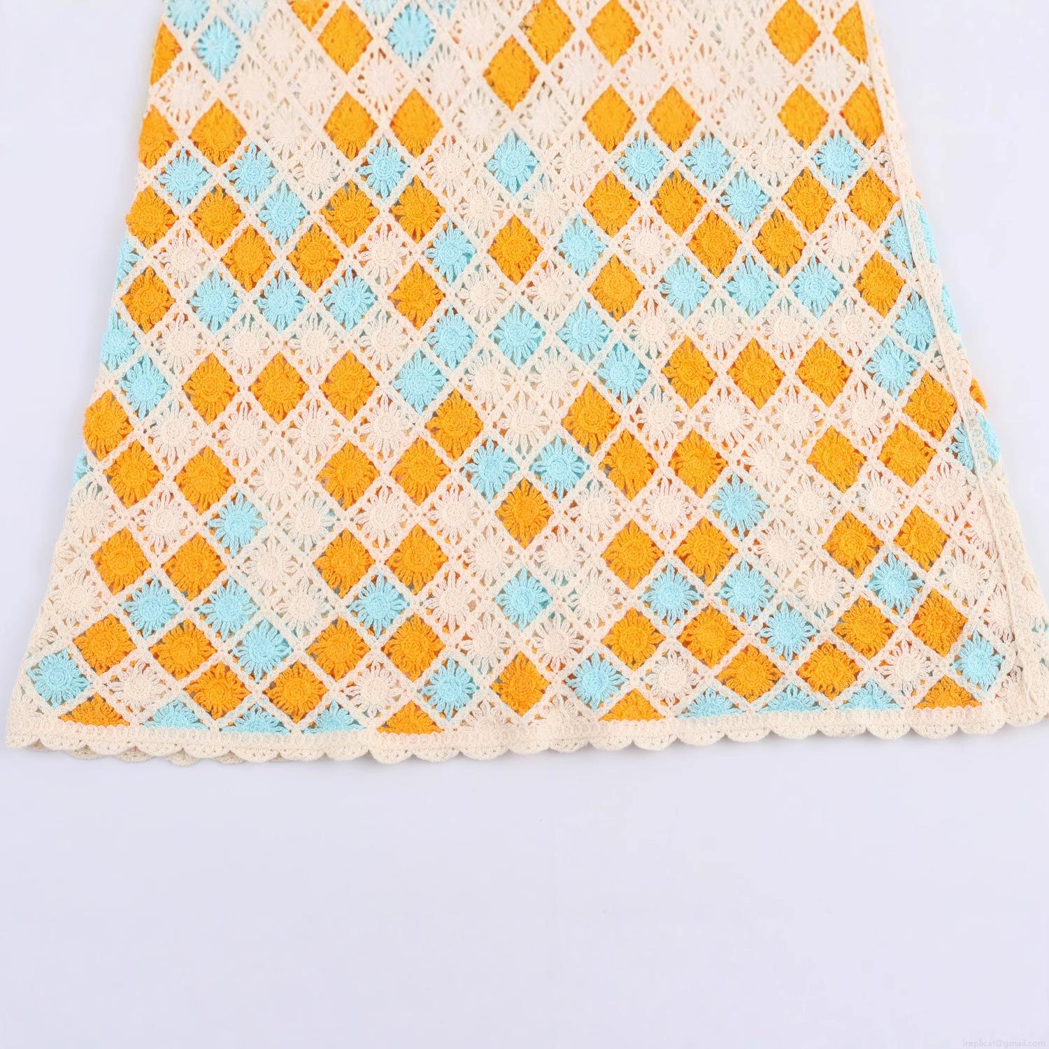 • Bohemian Crochet Knit Mini Dress 100% Polyester Sleeveless U-Neck Geometric Hollow Out Patchwork Beach Vacation Party Sundress For Women Stylish Summer Fashion