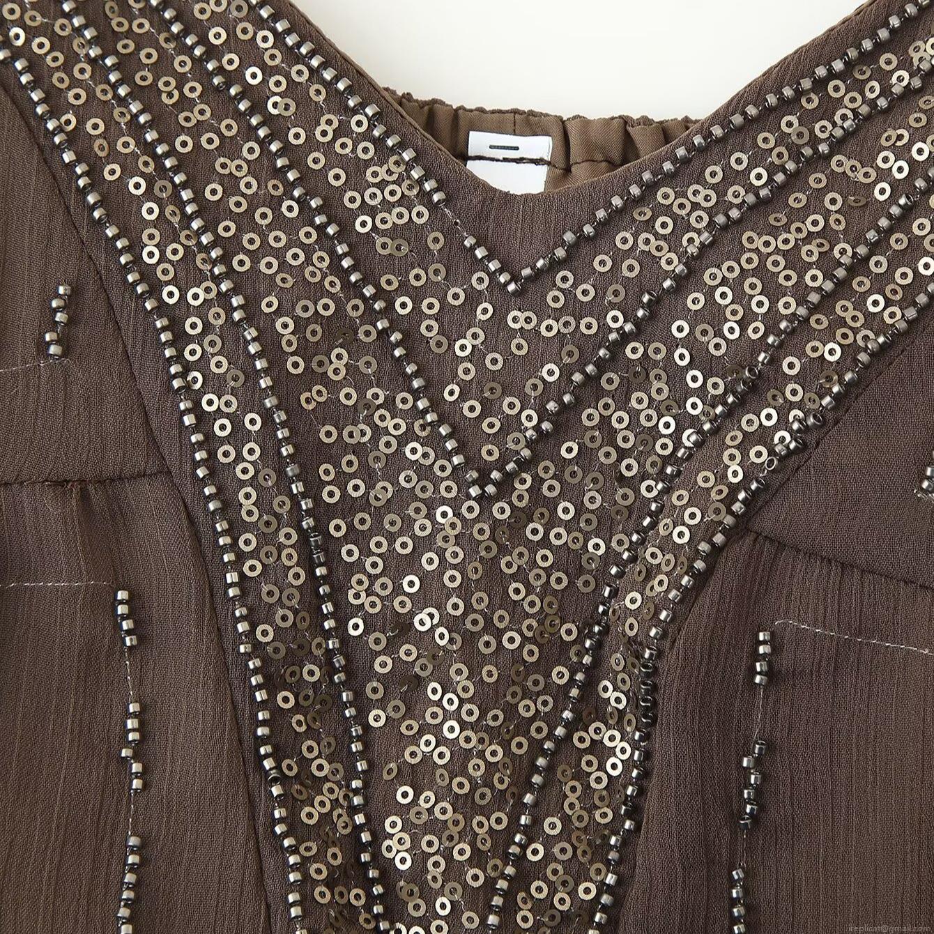 • Bohemian V-Neck Sequin Beaded Cami Dress Loose Lightweight Chiffon Mini Dress For Summer Vacation Women Sexy Spaghetti Strap Dress