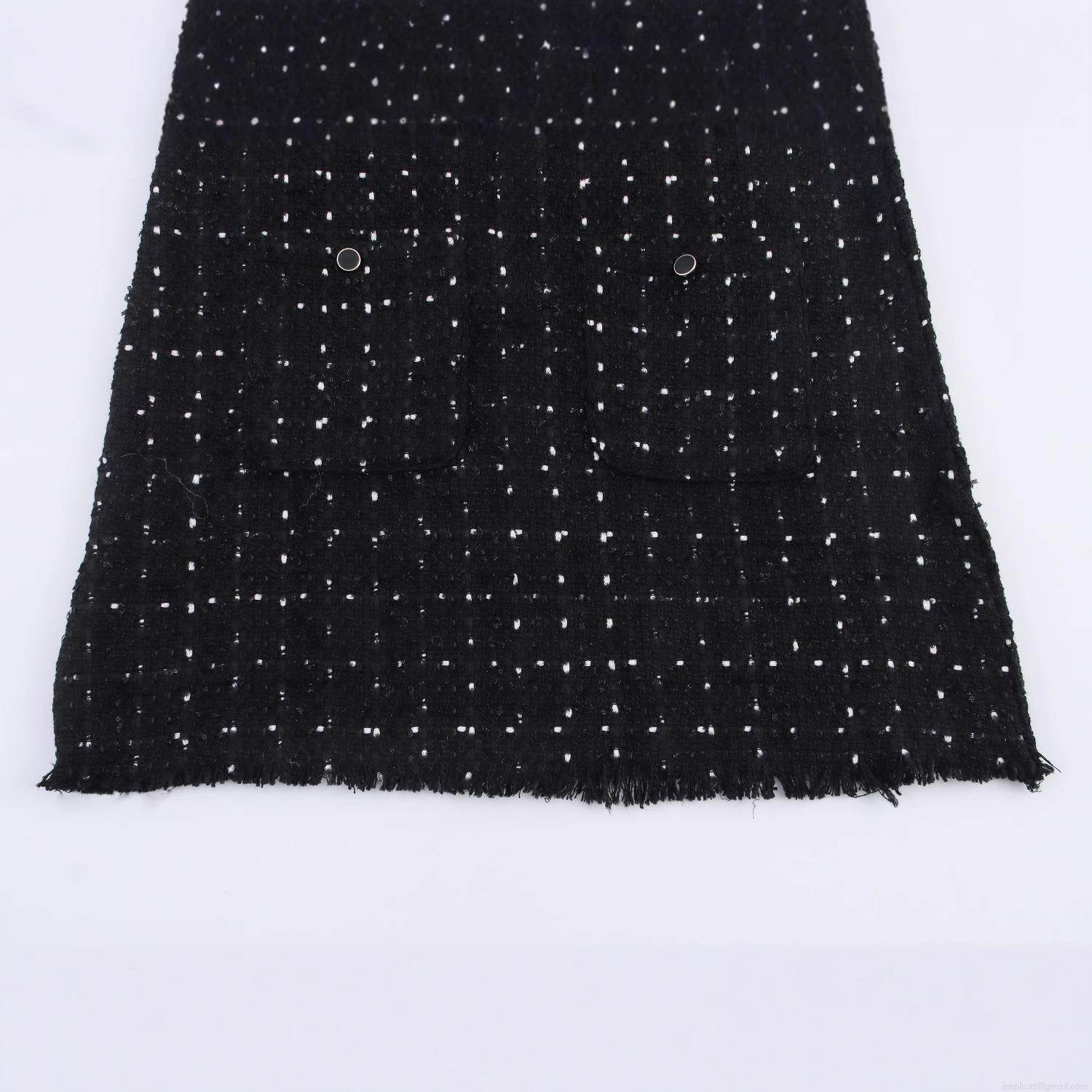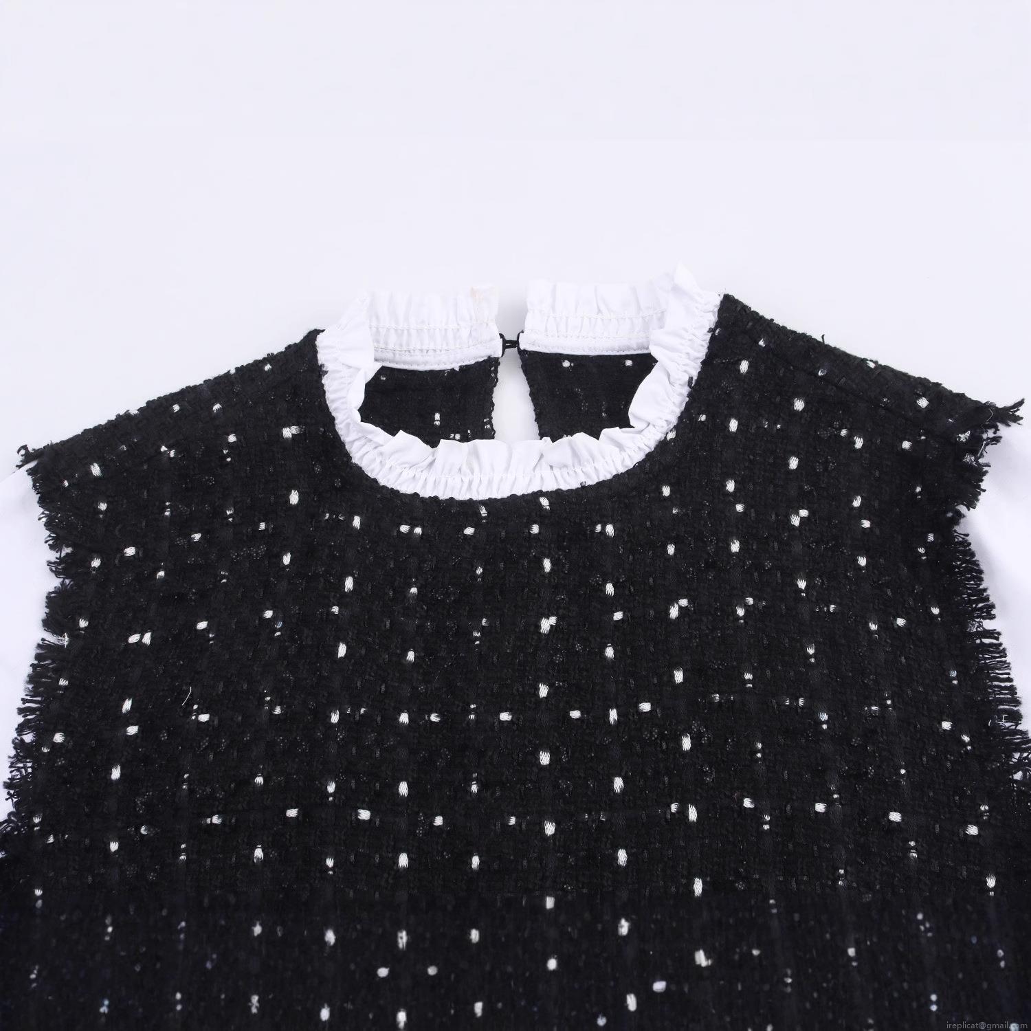 • Elegant Black And White Contrast Tweed Mini Dress With Ruffle Neck Long Sleeve Puff Sleeves Button Details Lady Style Party Evening Dress For Women
