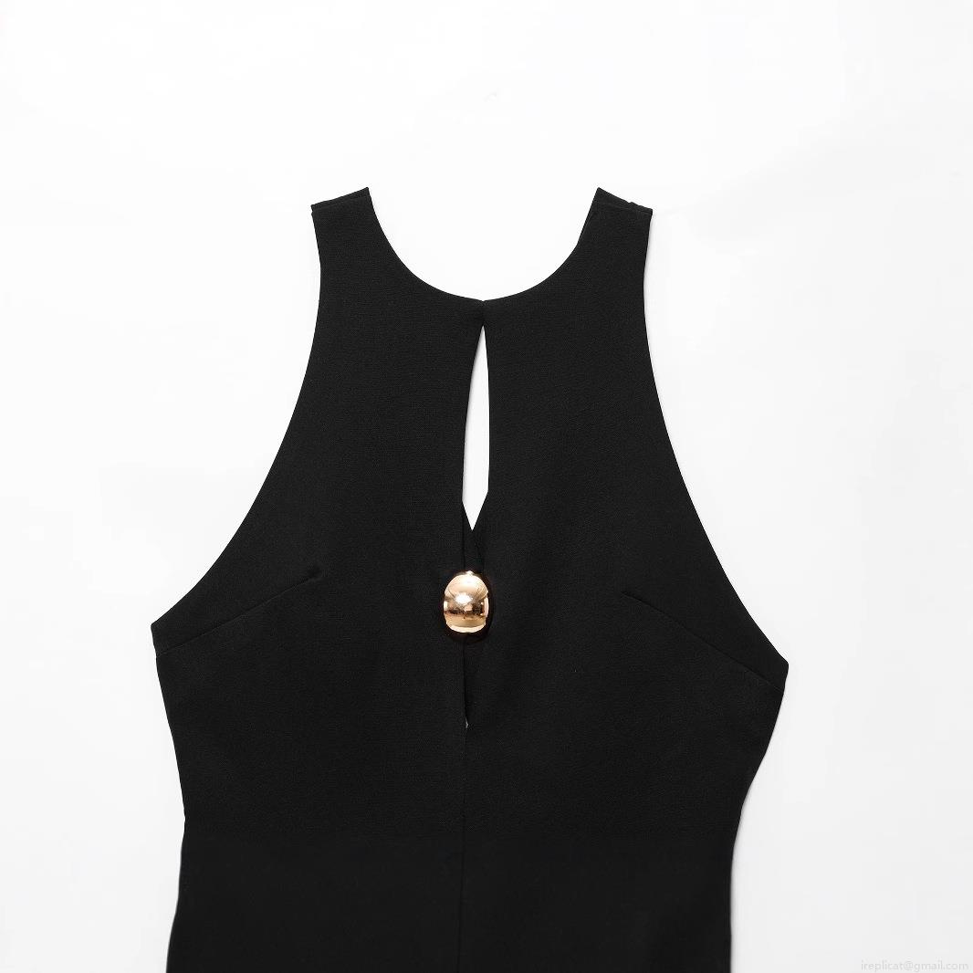 • Elegant Black Halter Neck Mini Dress With Gold Ball Button Decoration Sexy Backless Cross Strap Bodycon Party Dress Women Polyester Clubwear