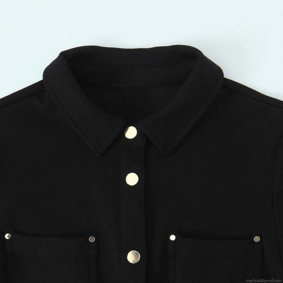 • Elegant Black Polyester Spandex Shirt Dress For Women Gold Buttons Lapel Long Sleeve Slim Fit Mini Dress Office Party Evening Wear