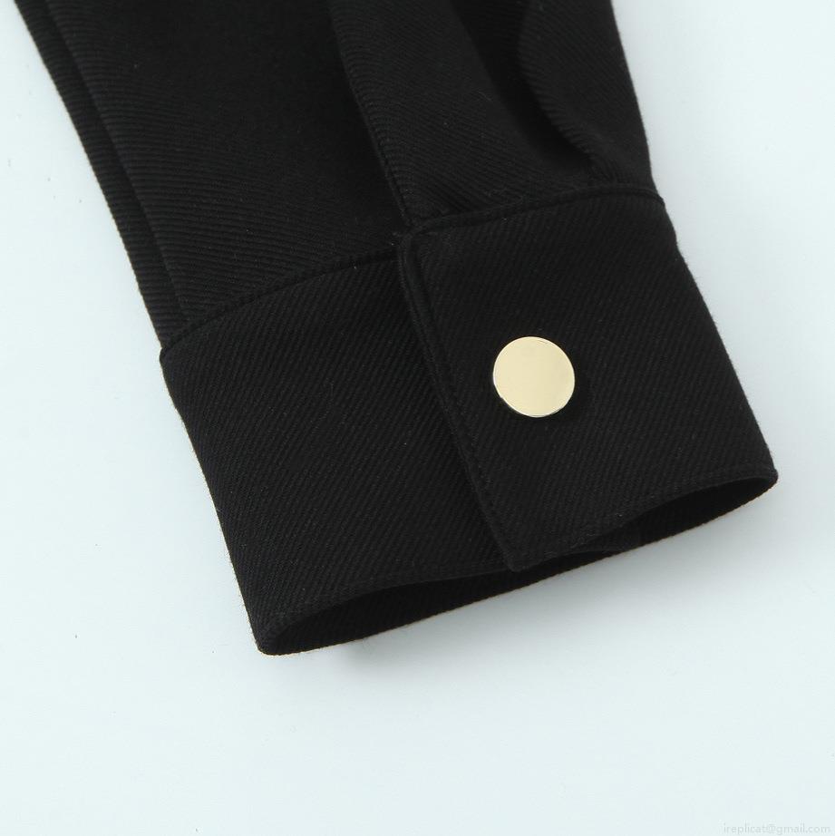 Elegant Black Polyester Spandex Shirt Dress For Women Gold Buttons Lapel Long Sleeve Slim Fit Mini Dress Office Party Evening Wear